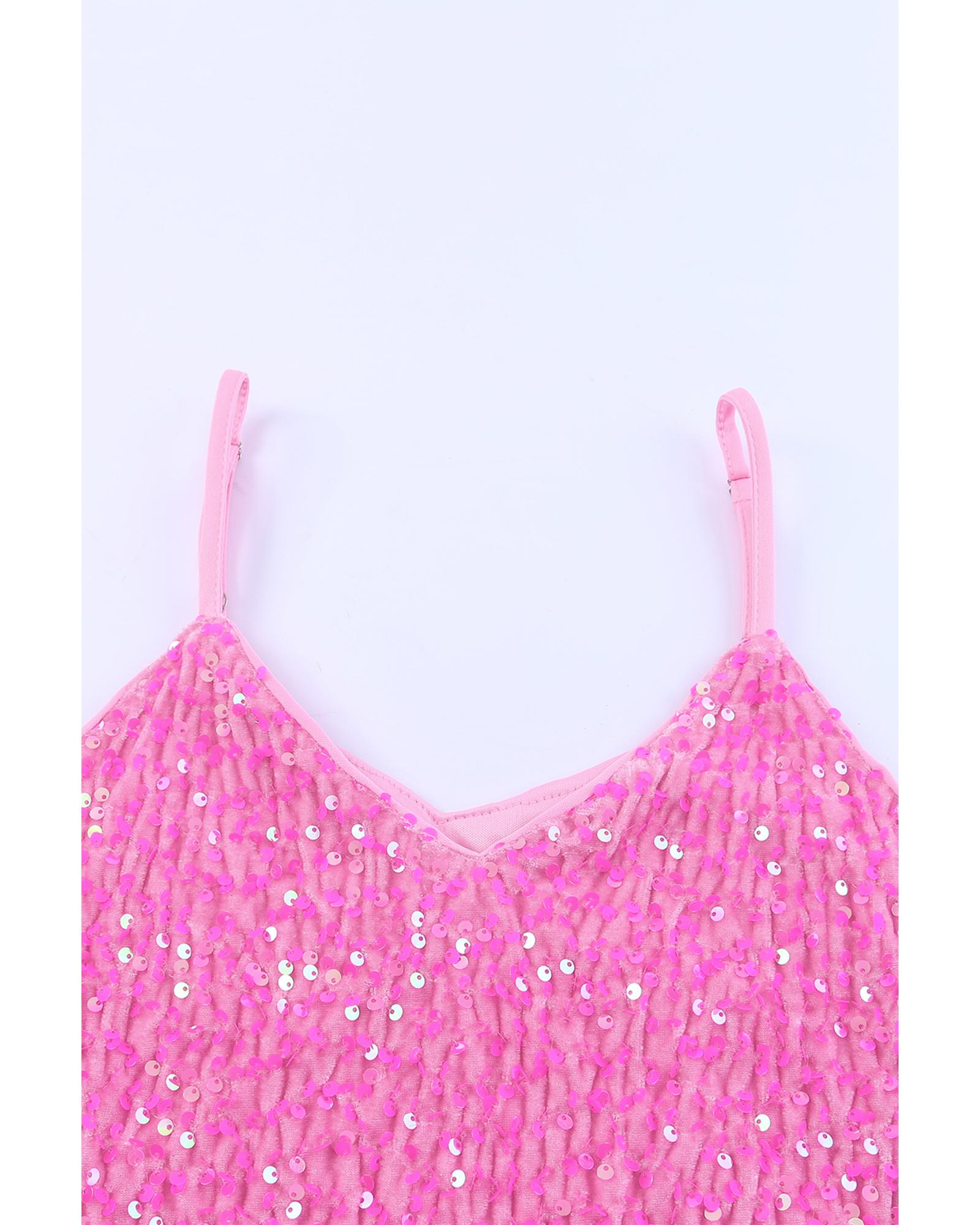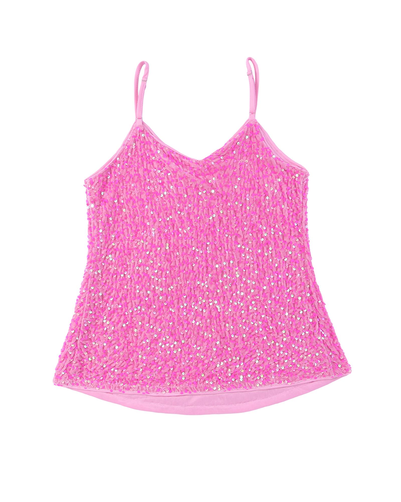 • Pink sequin tank top