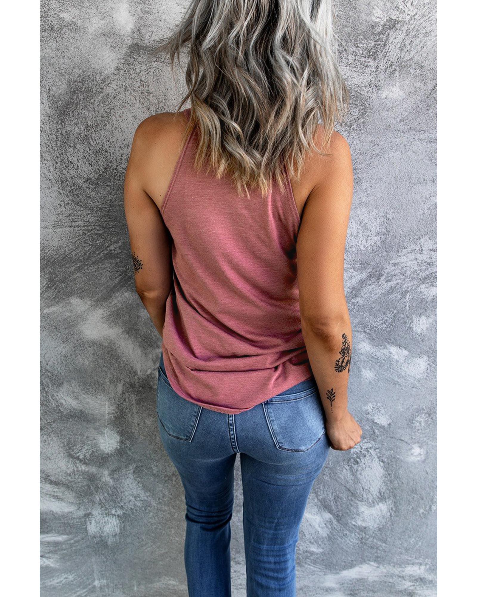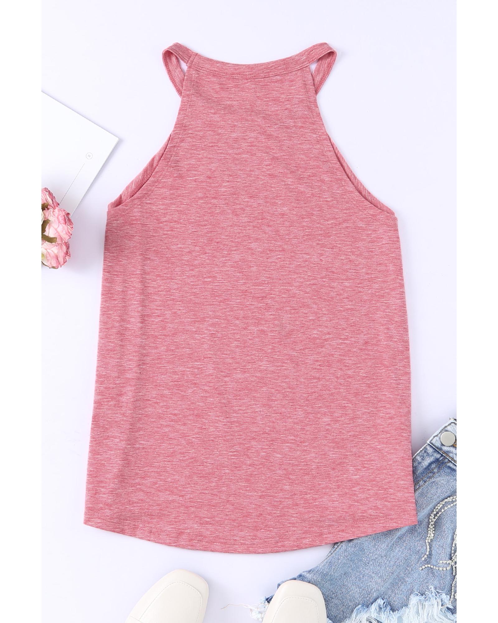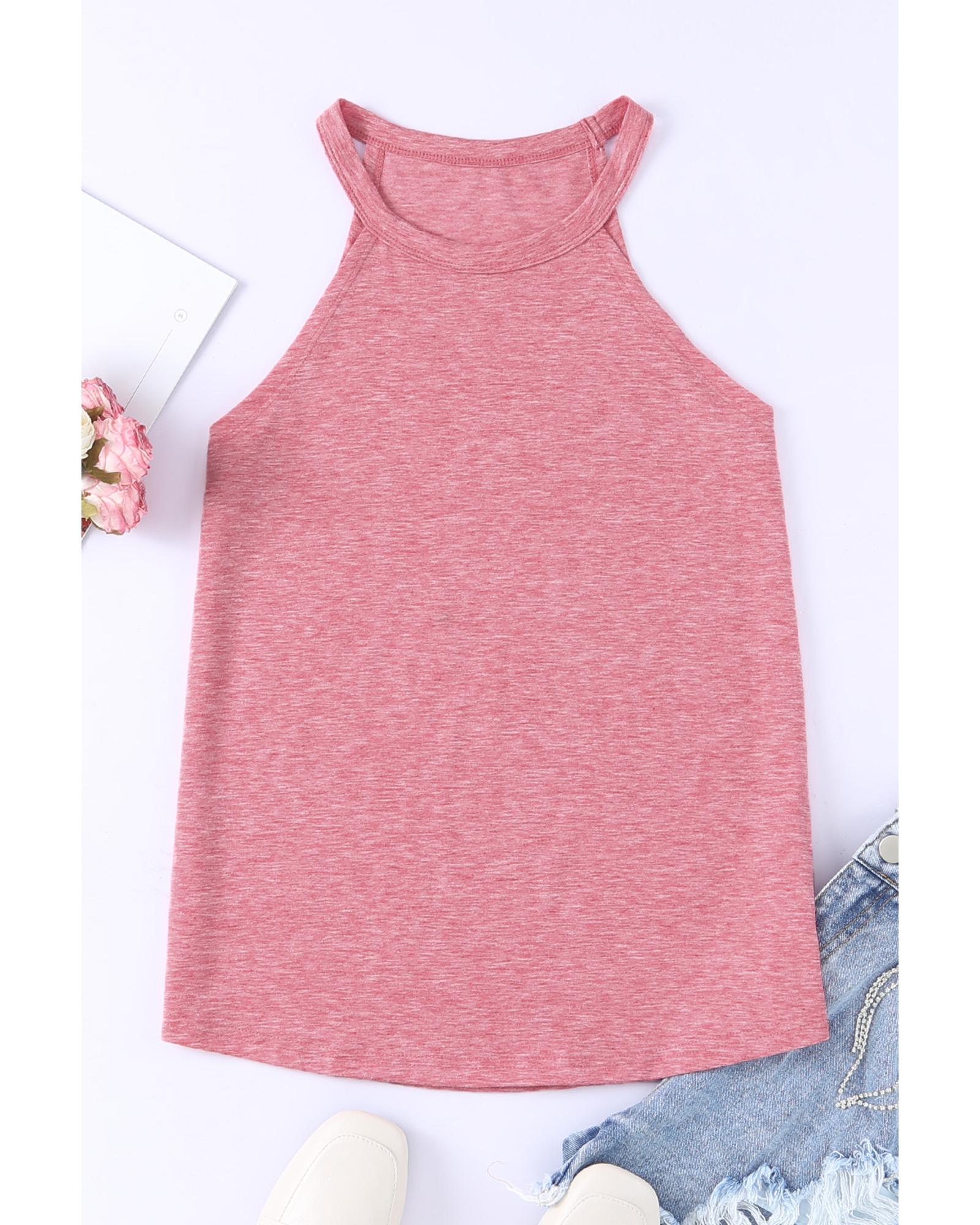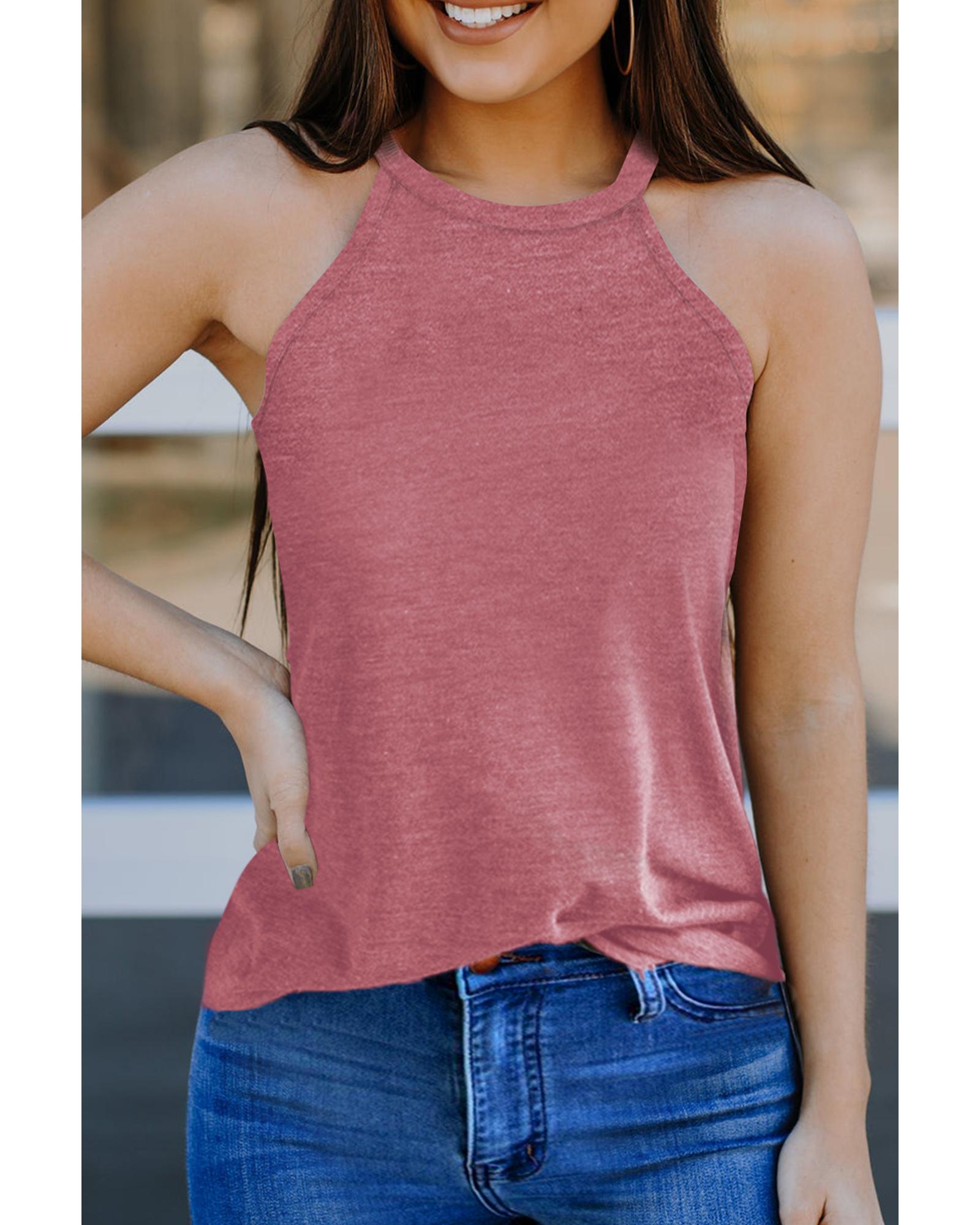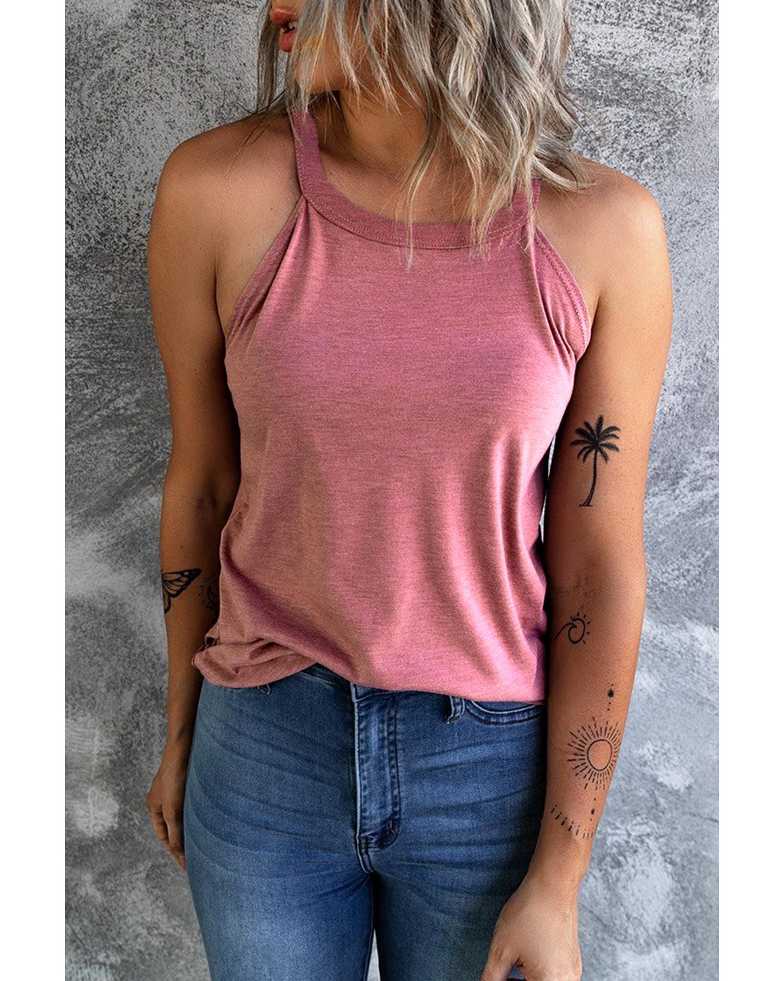 • Pink solid color crew neck tank top