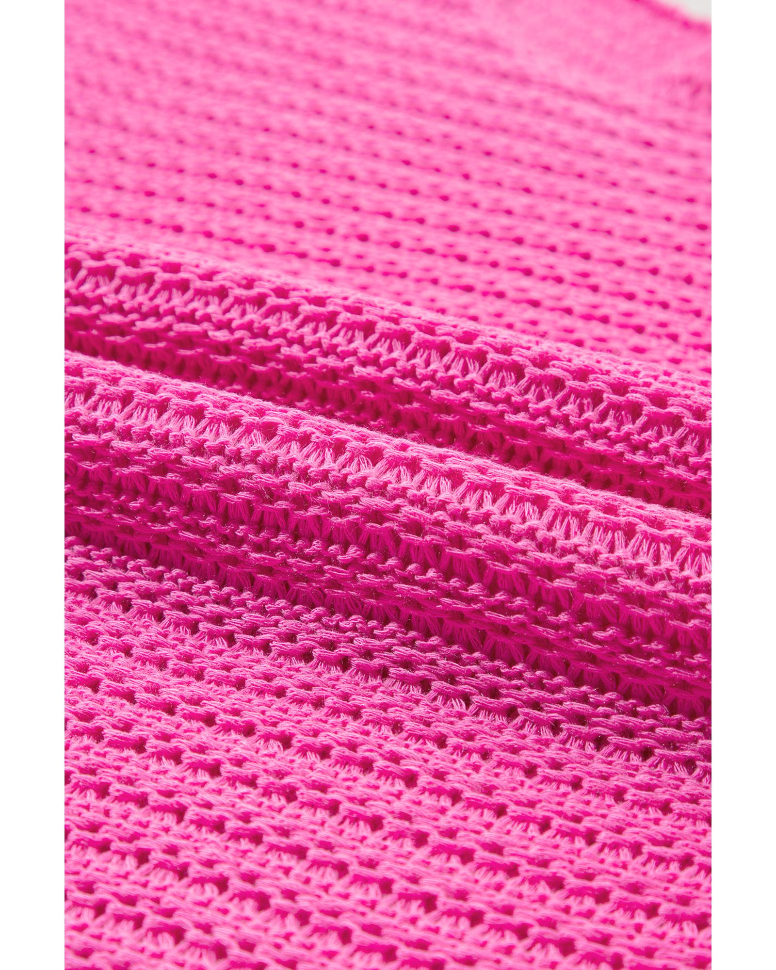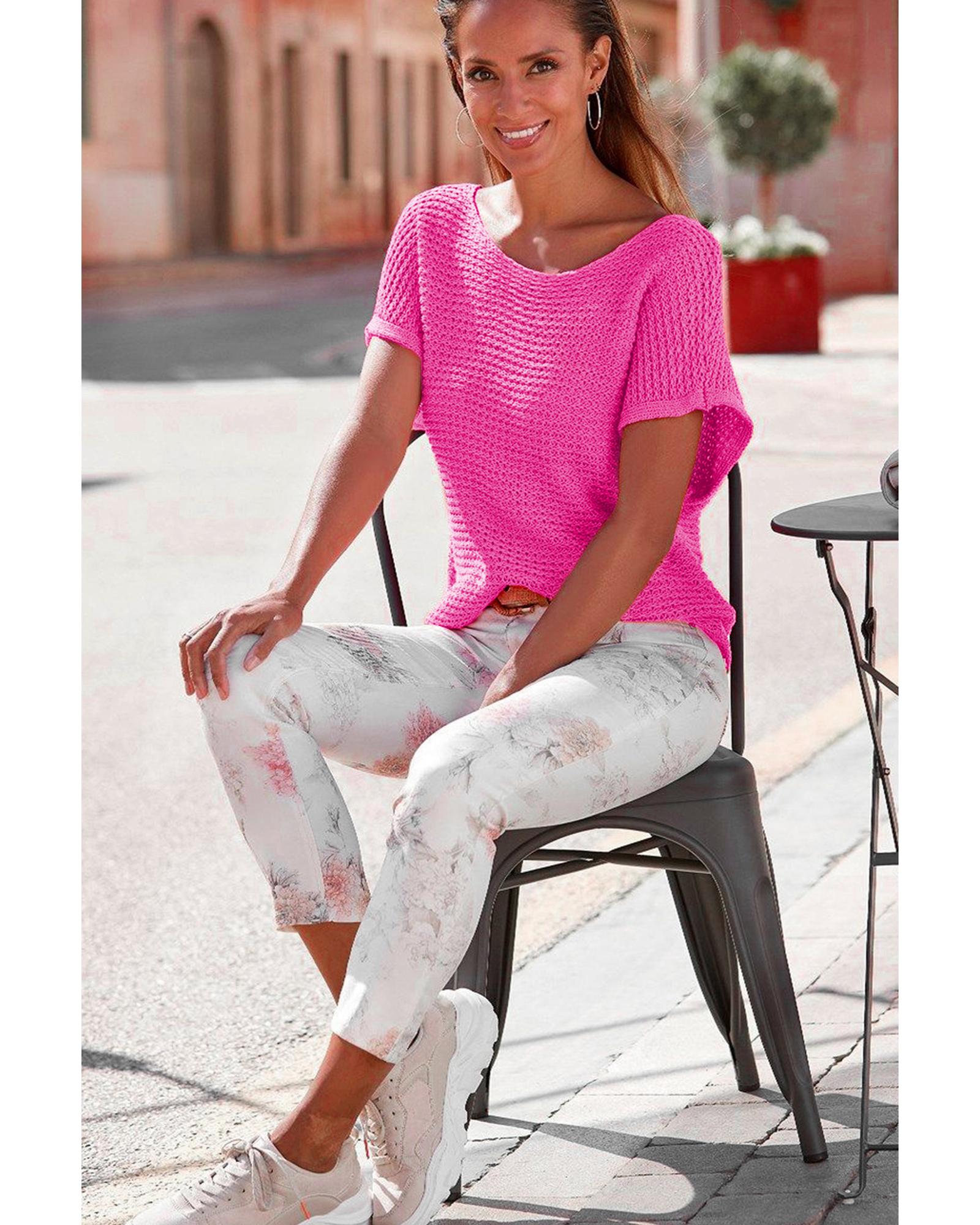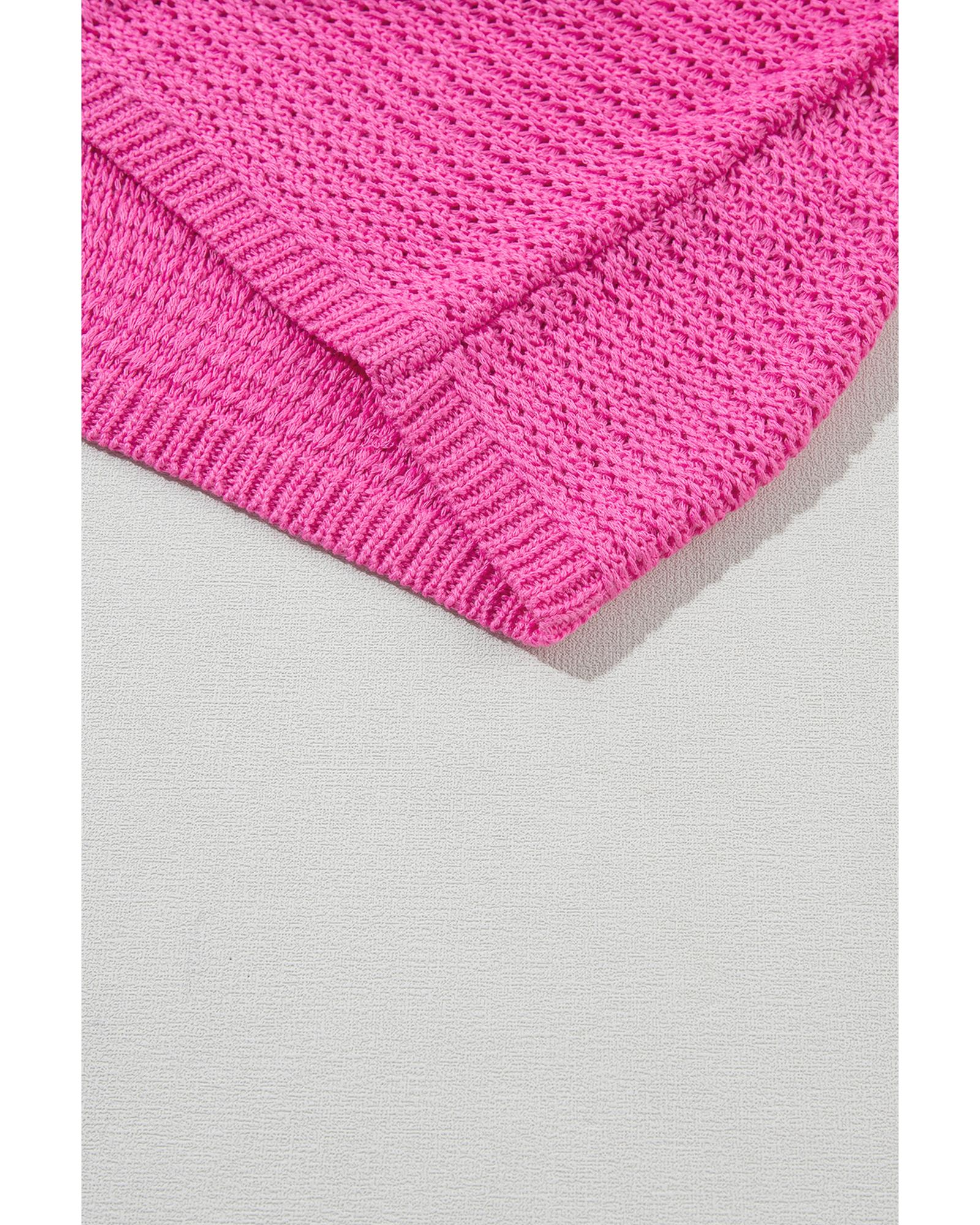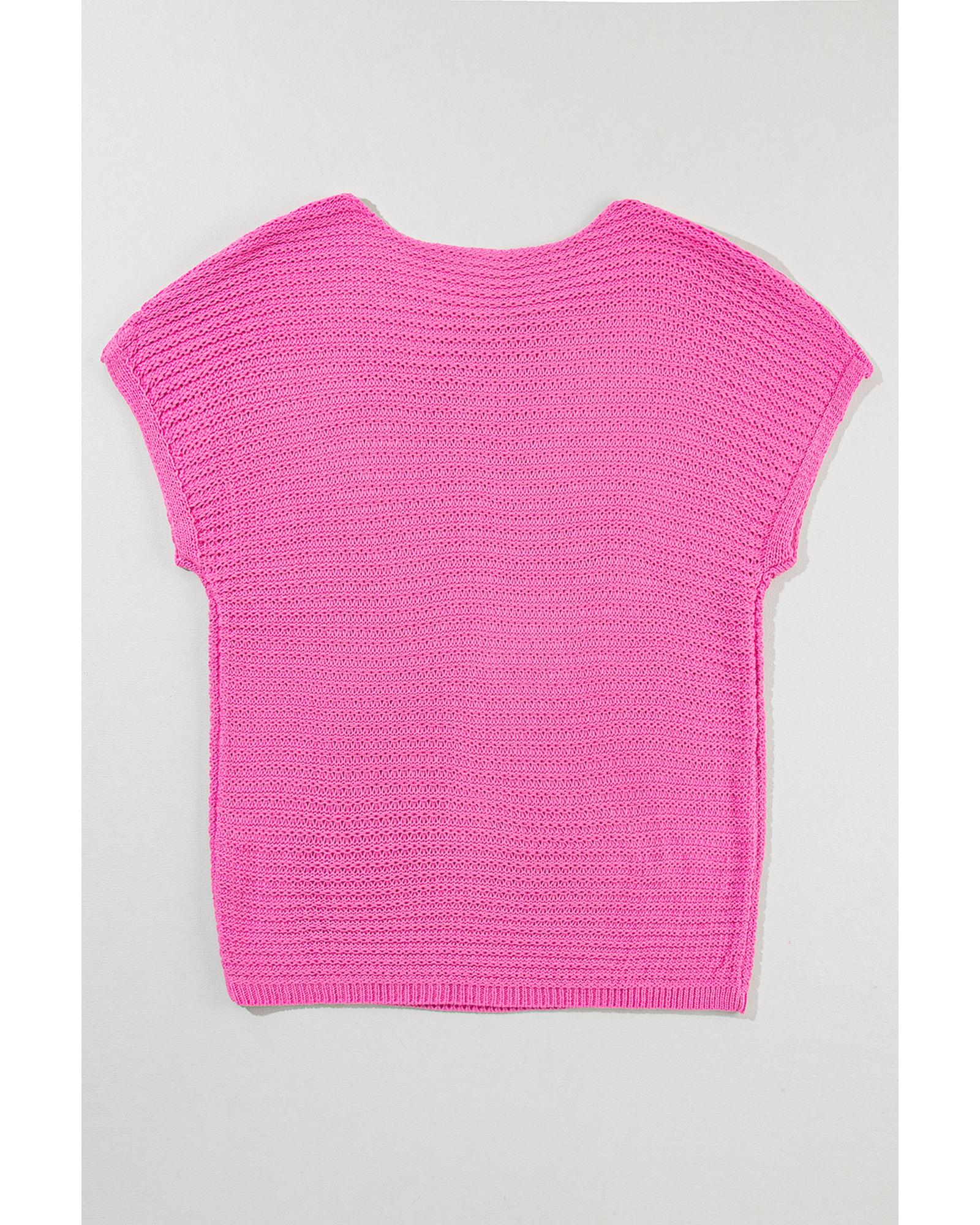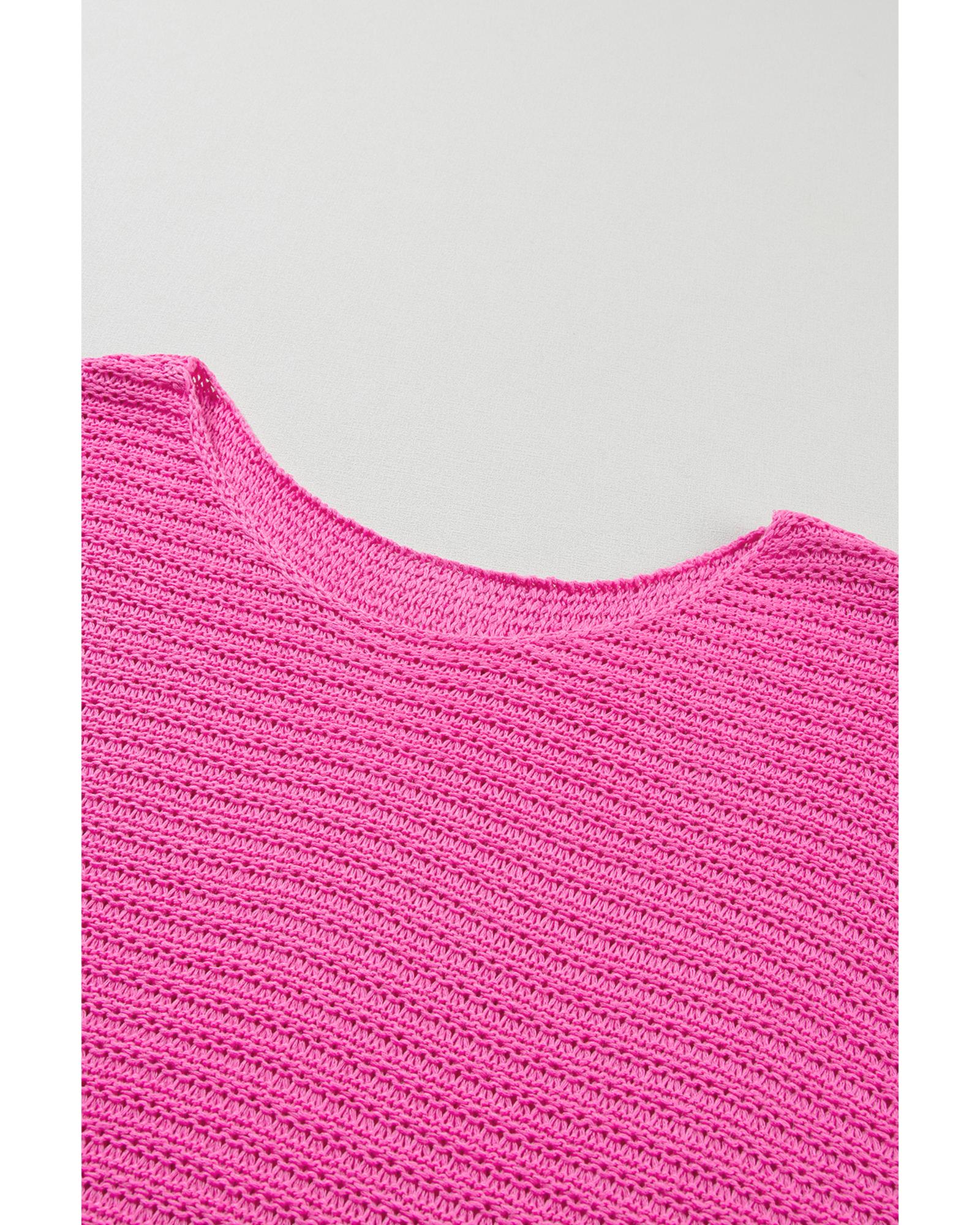 Pink Solid Loose Knit Short Dolman Sleeve Sweater – L