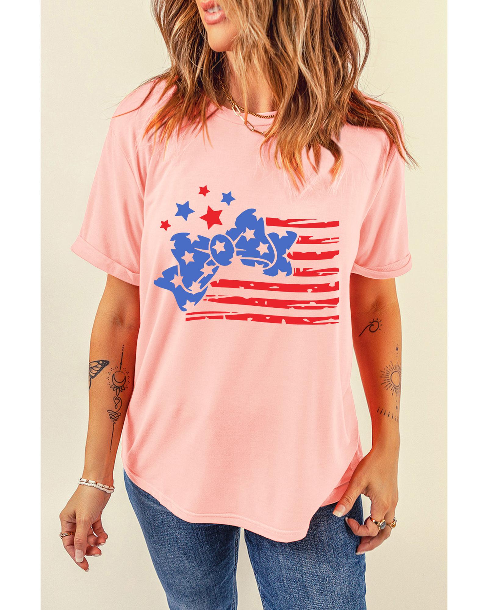 - Pink Stars and Stripes Bow Knot Crew Neck T Shirt