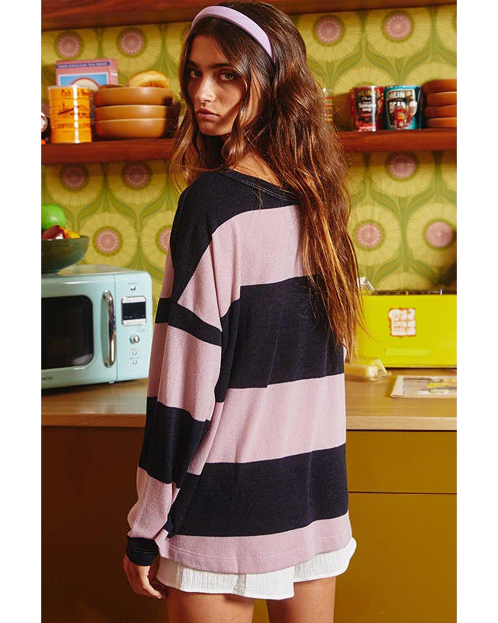 Pink Stripe Color Block Number 22 Print Game Day Loose Long Sleeve Top – XL