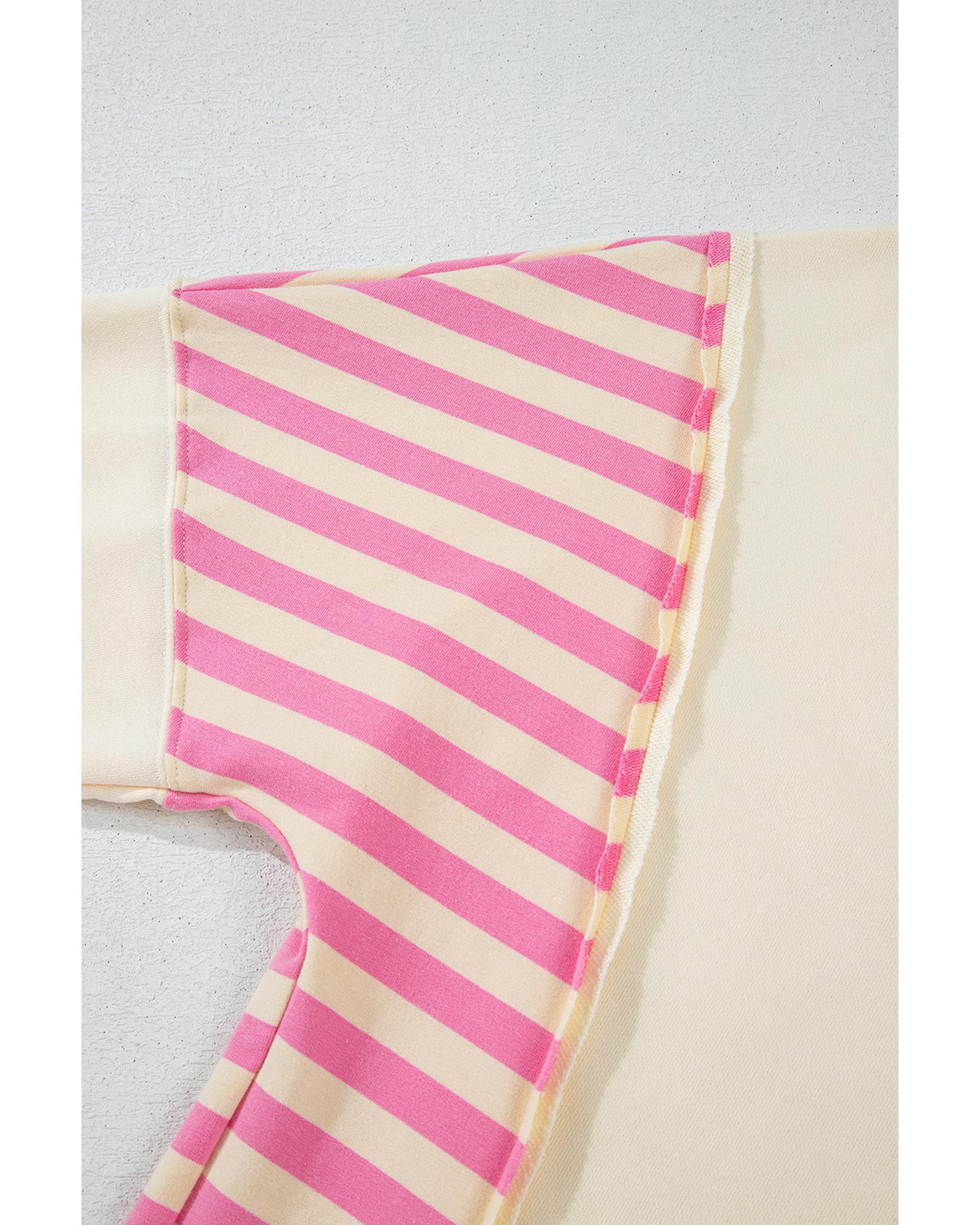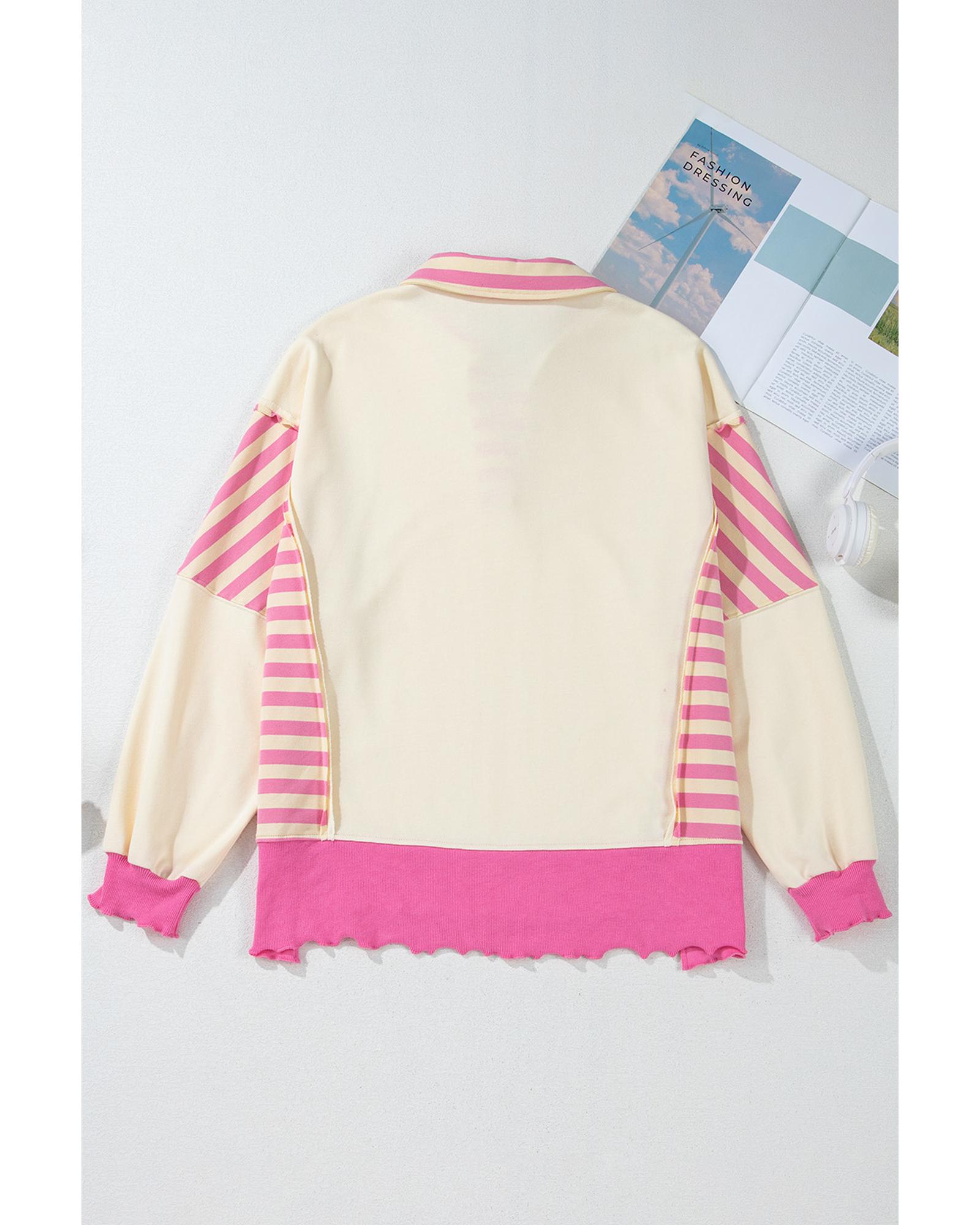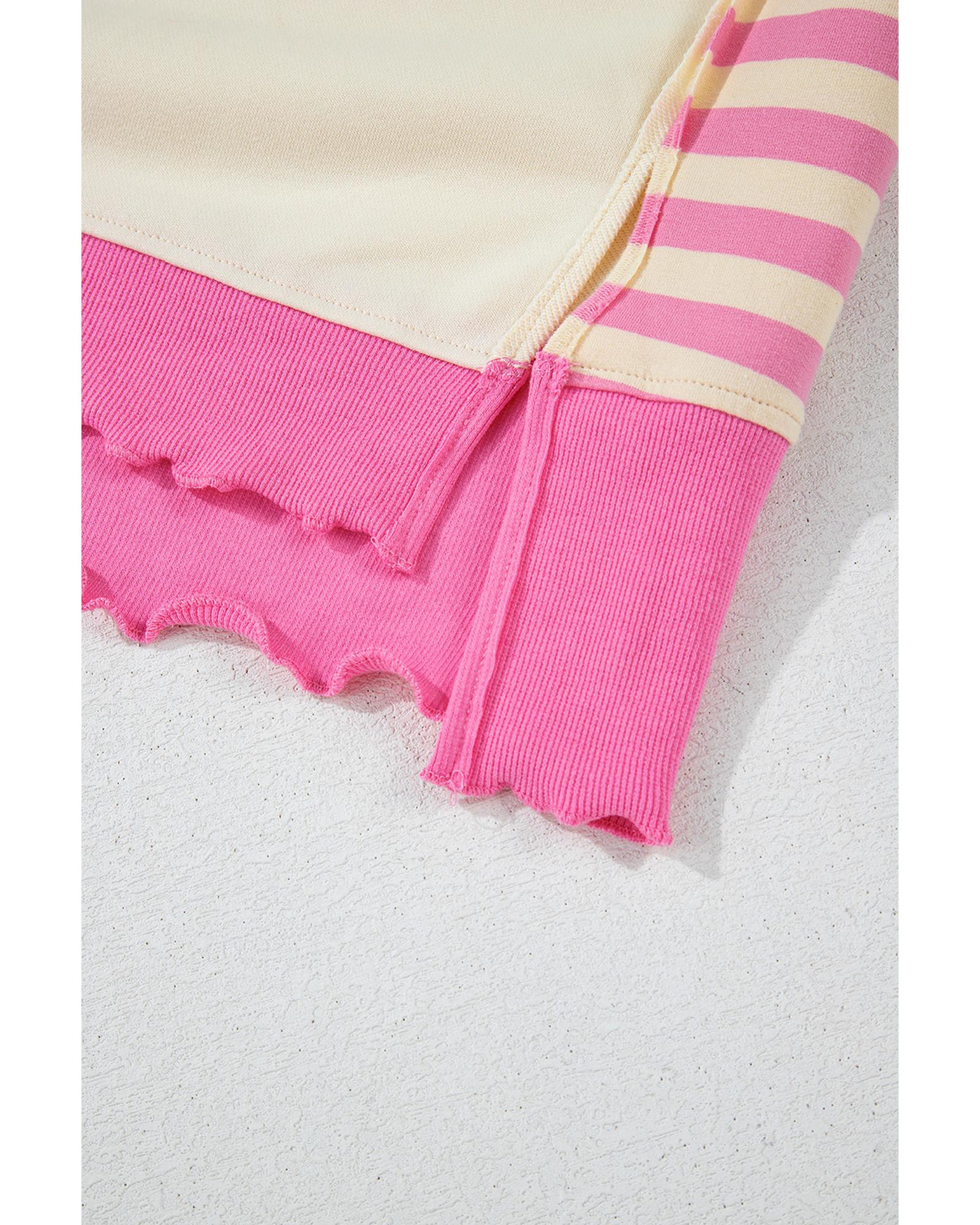 Pink Stripe Colorblock Patchwork Collared French Terry Knit Top – L