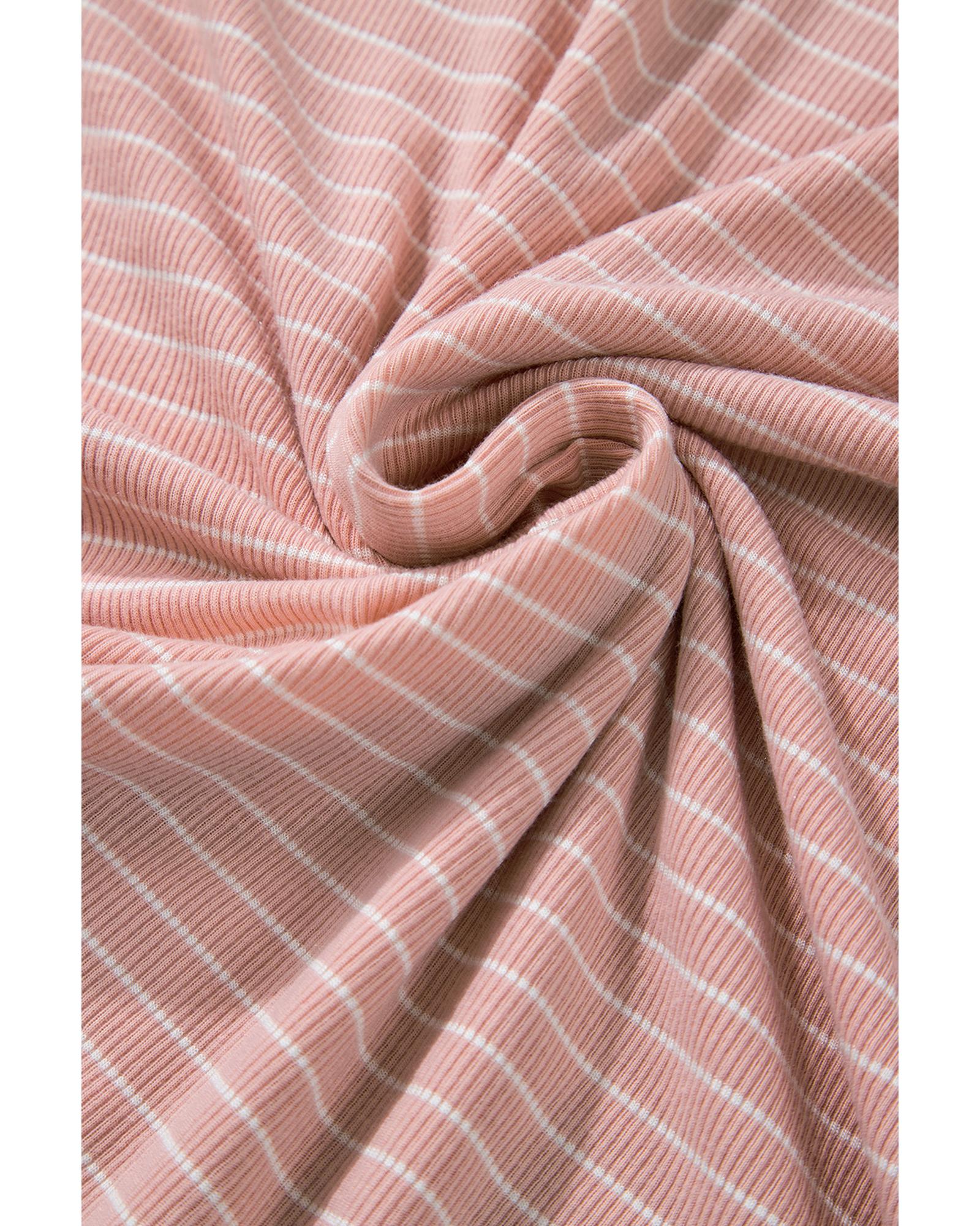 Pink Stripe Cowl Neck Side Slits Loose Fit Long Sleeve Top – L