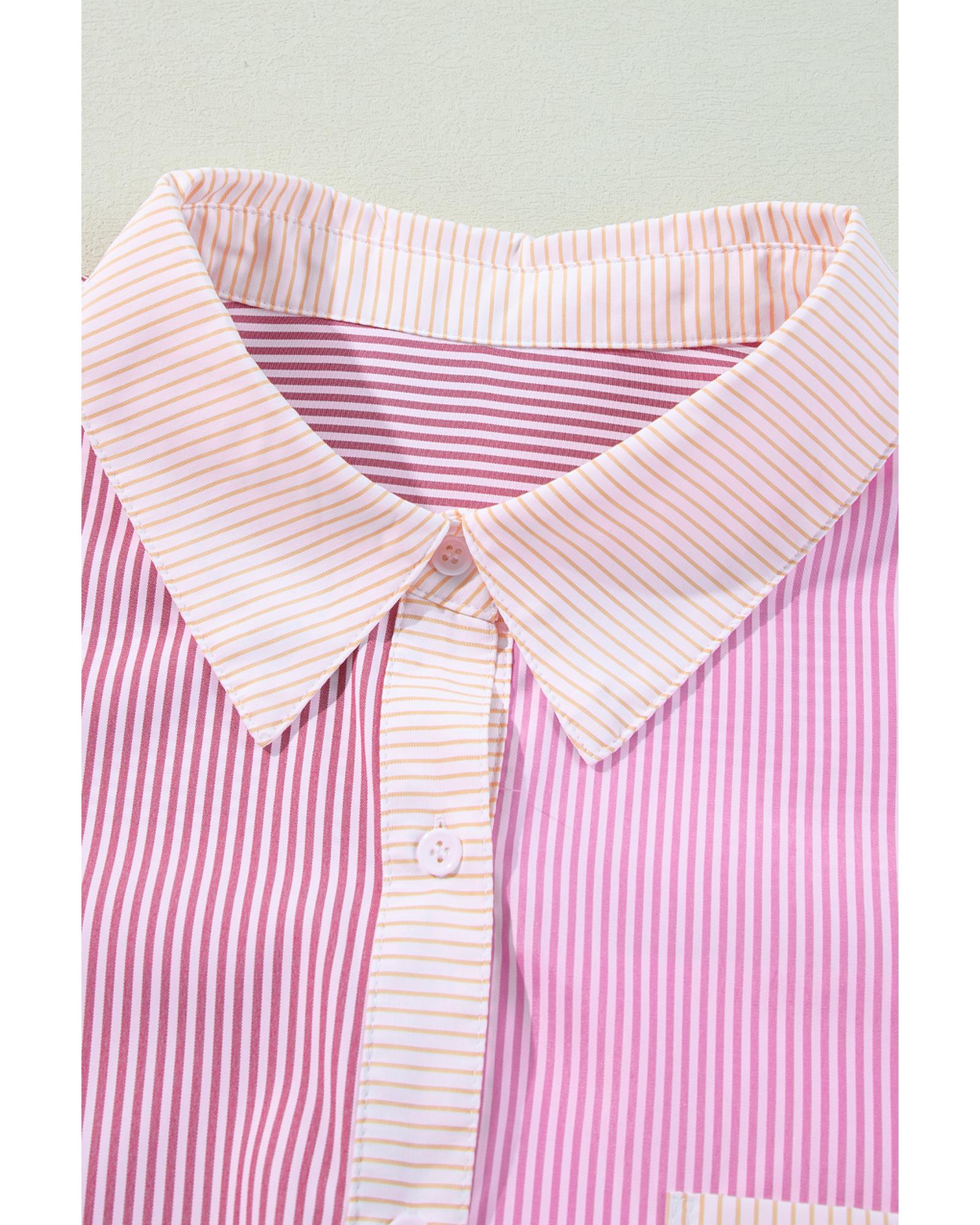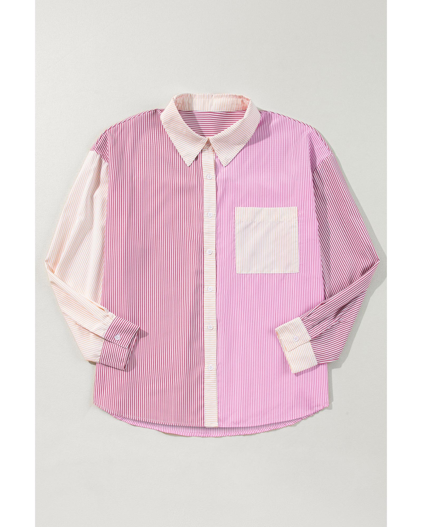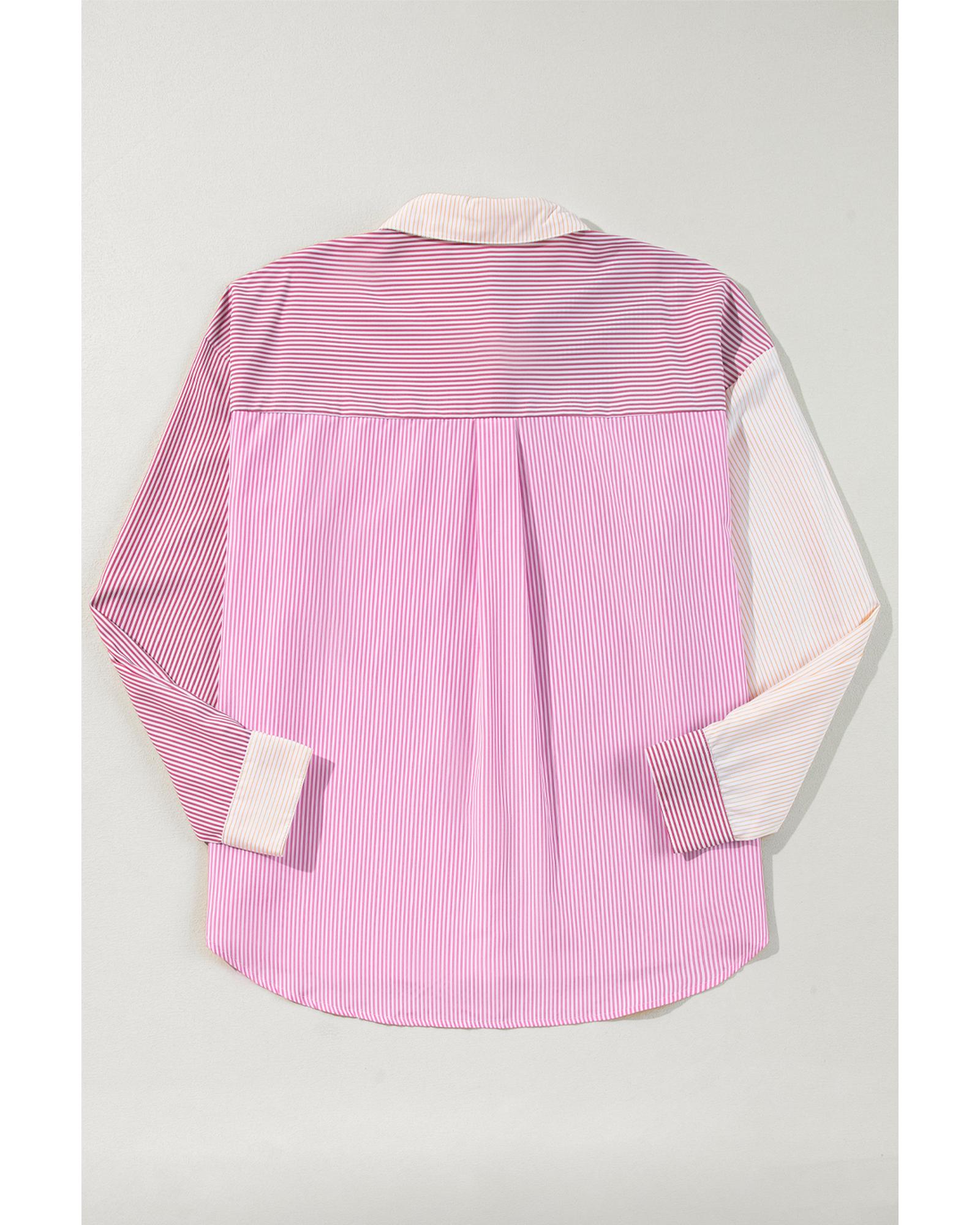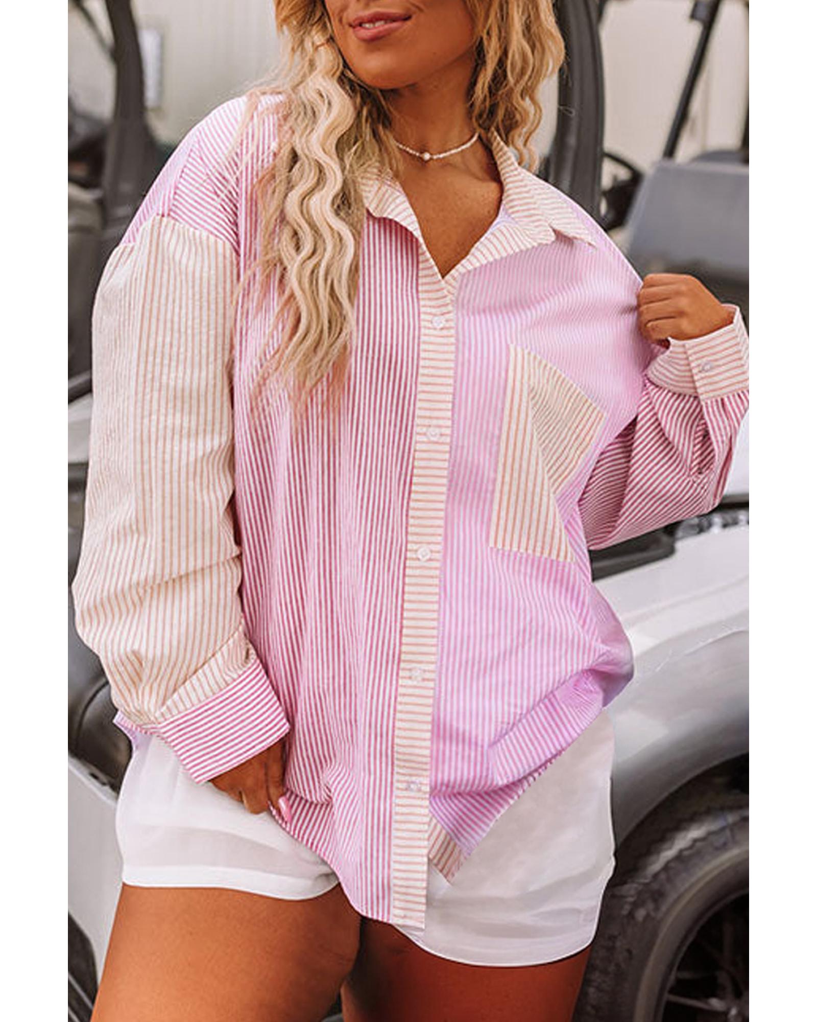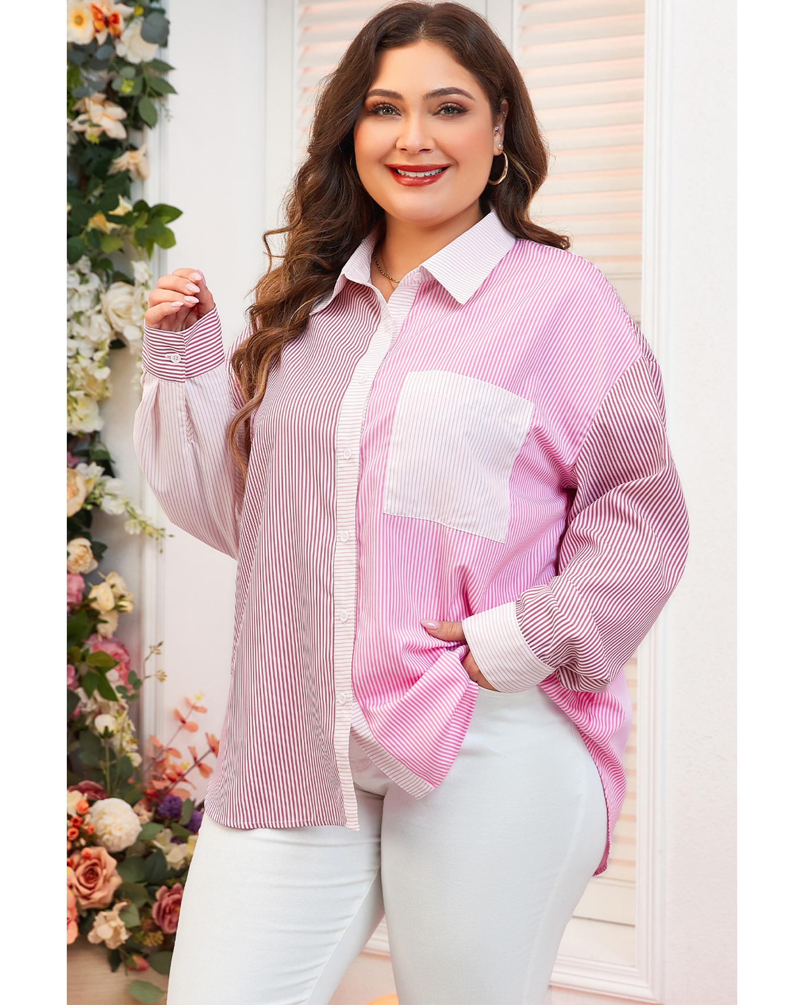 Pink Stripe Print Colorblock Plus Size Shirt – 3X