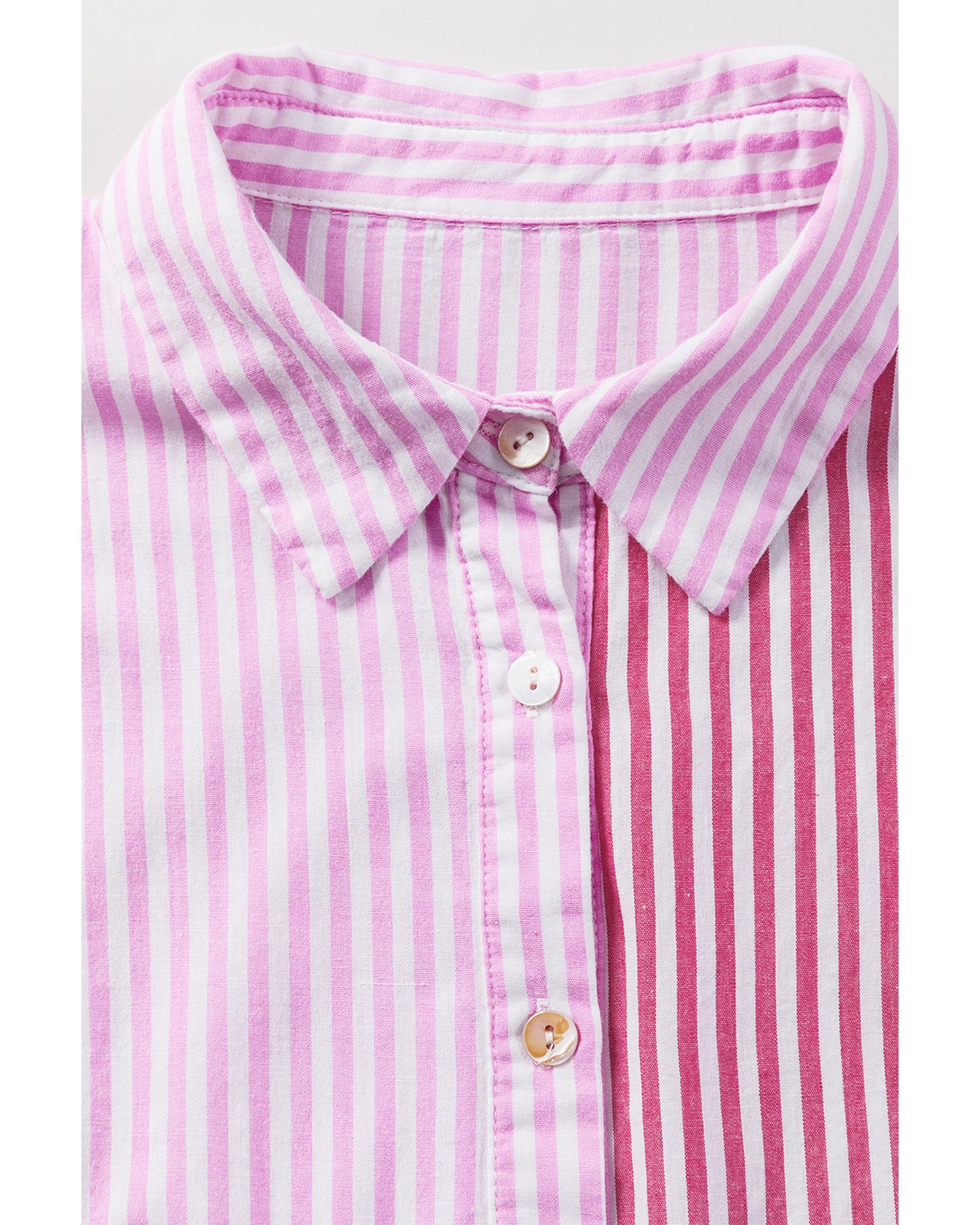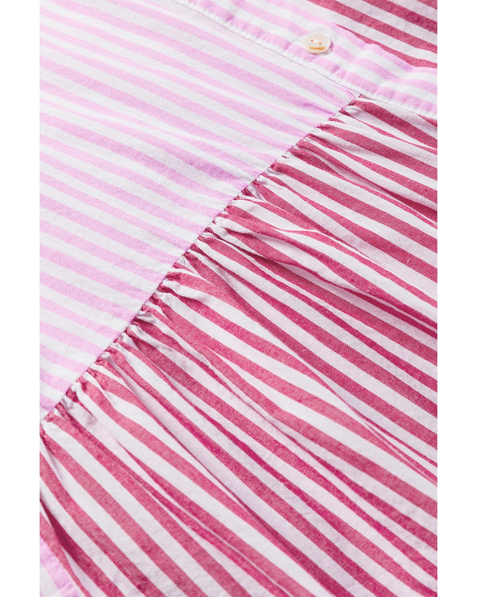 Pink Stripe Striped Patchwork Ruffled Hem Button up Shirt – M
