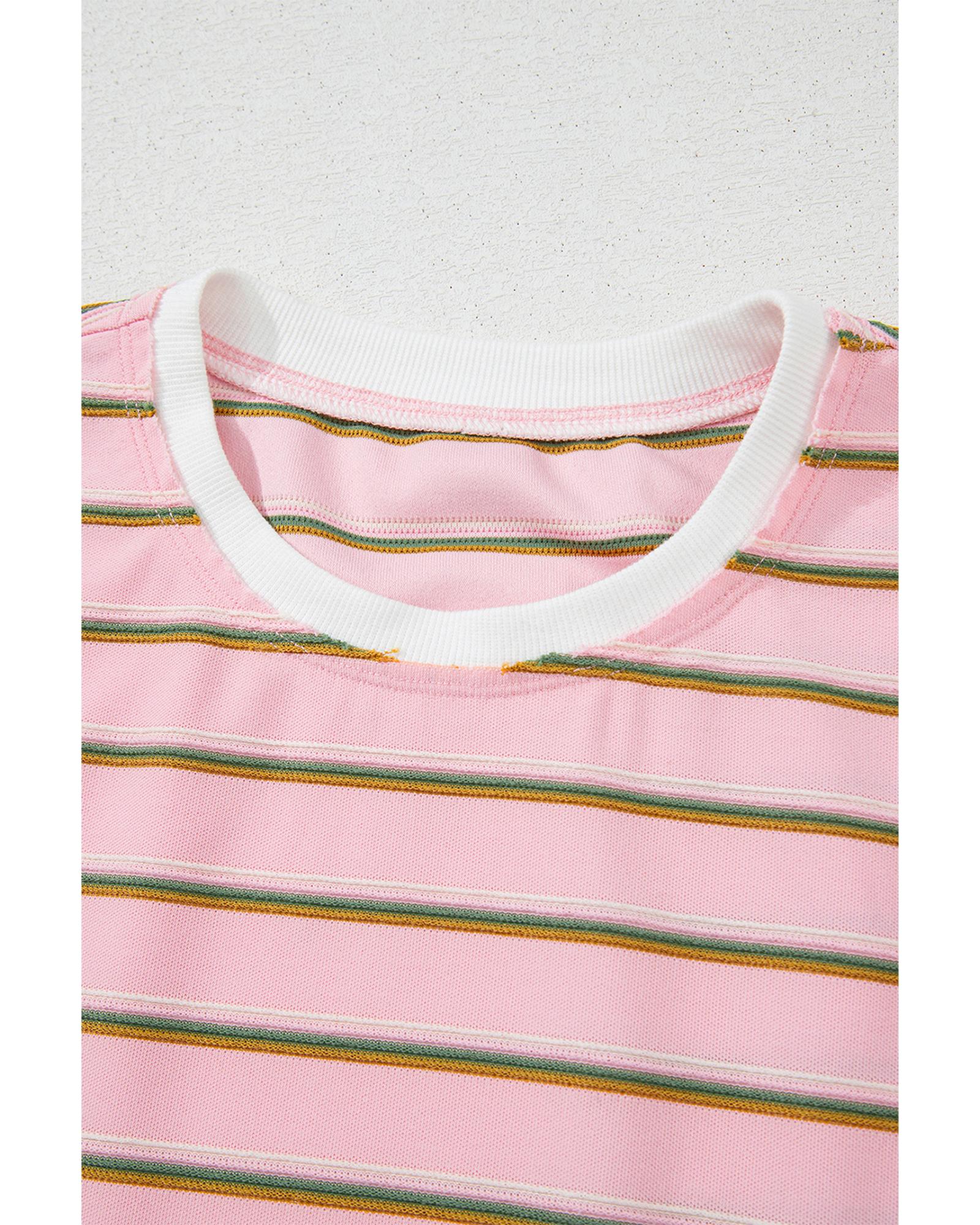 Pink Stripe Wide Short Sleeve Tee and Short Set – L