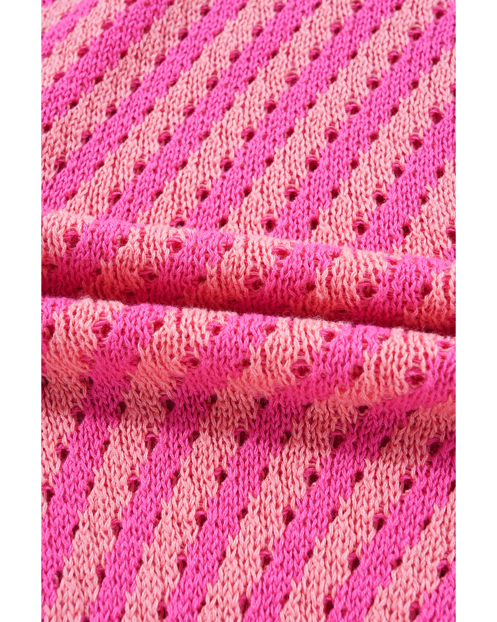 - Pink striped buttoned V
