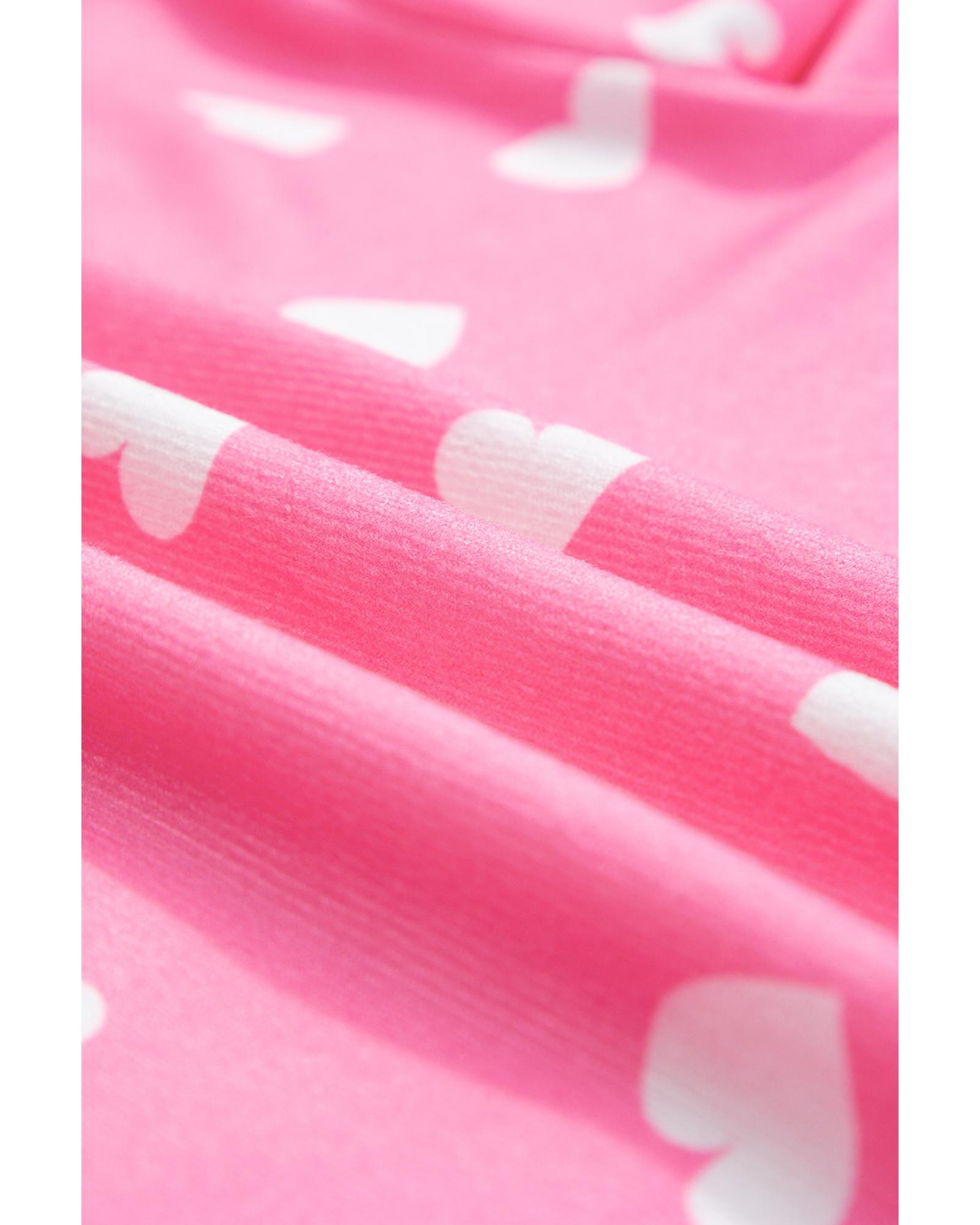 - Pink Valentine Heart Print Long Sleeve Tee and Shorts Lounge Set