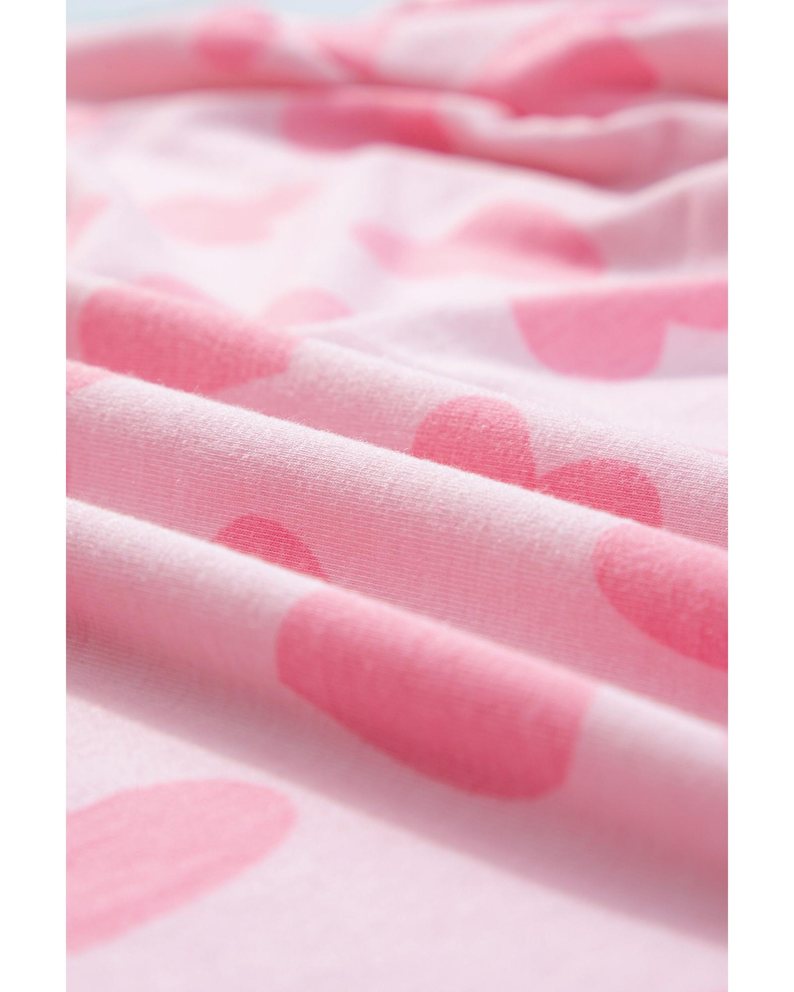 - Pink Valentine Heart Shape Print Long Sleeve Top Shorts Lounge Set
