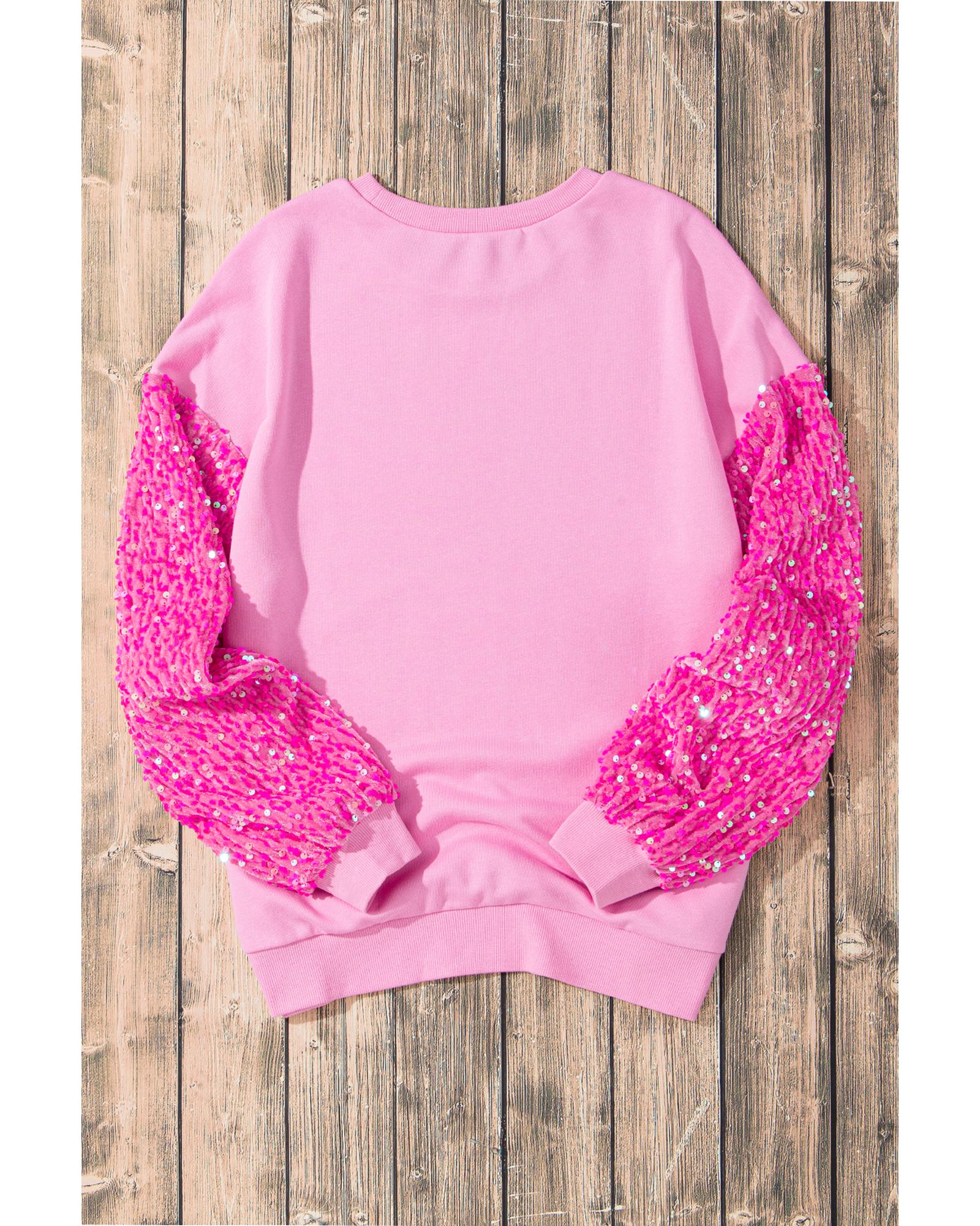Pink Valentines Heart Graphic Sequin Patchwork Long Sleeve Top – M