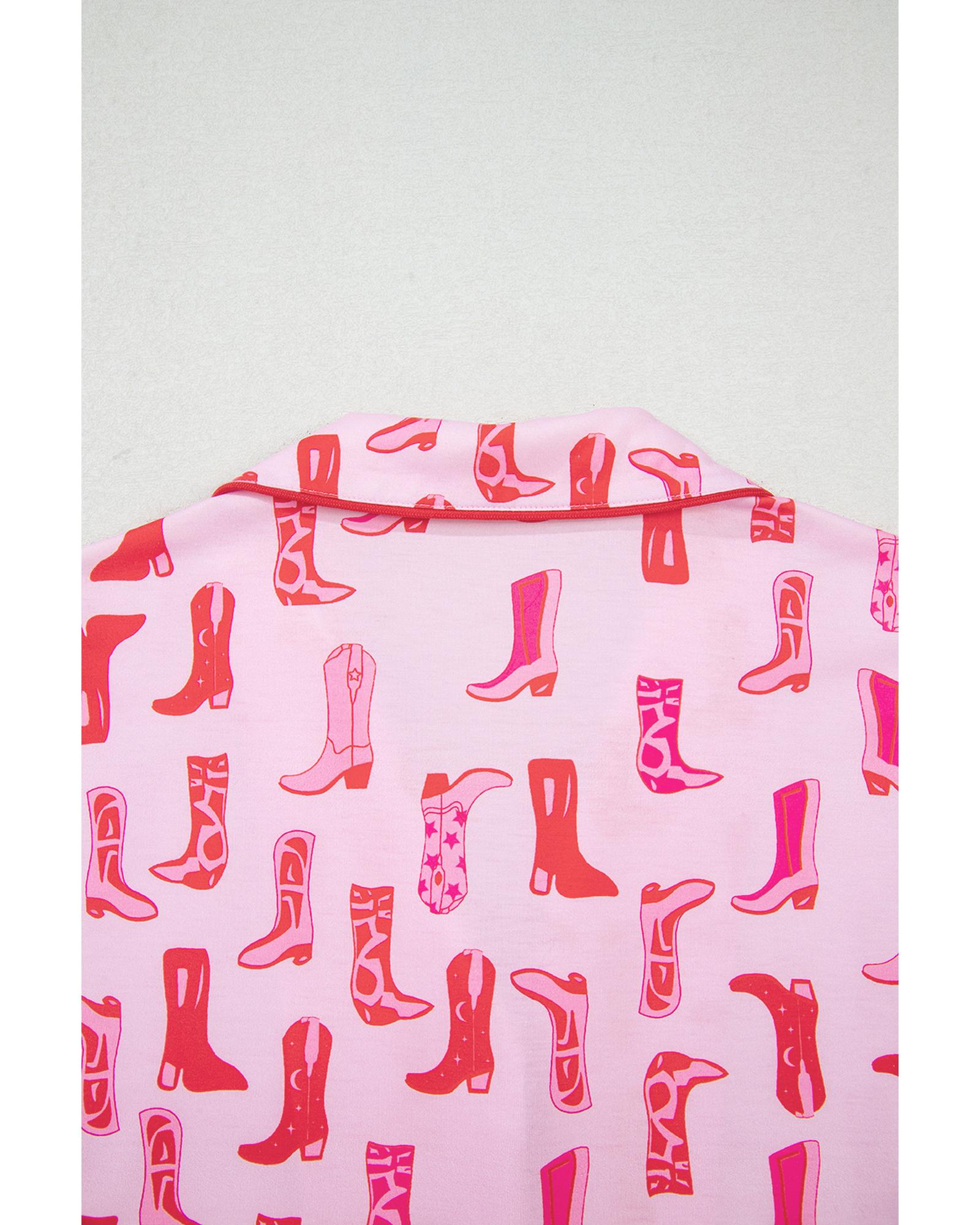 - Pink Western Cowgirl Boots Printed Shirt and Ruffled Shorts Pajama Set