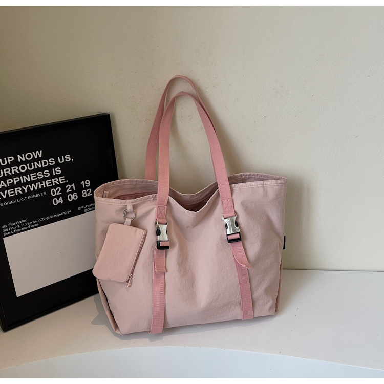 Pink Women’s Large Capacity Nylon Tote Bag – Stylish Casual Shoulder with Detachable Pouch
