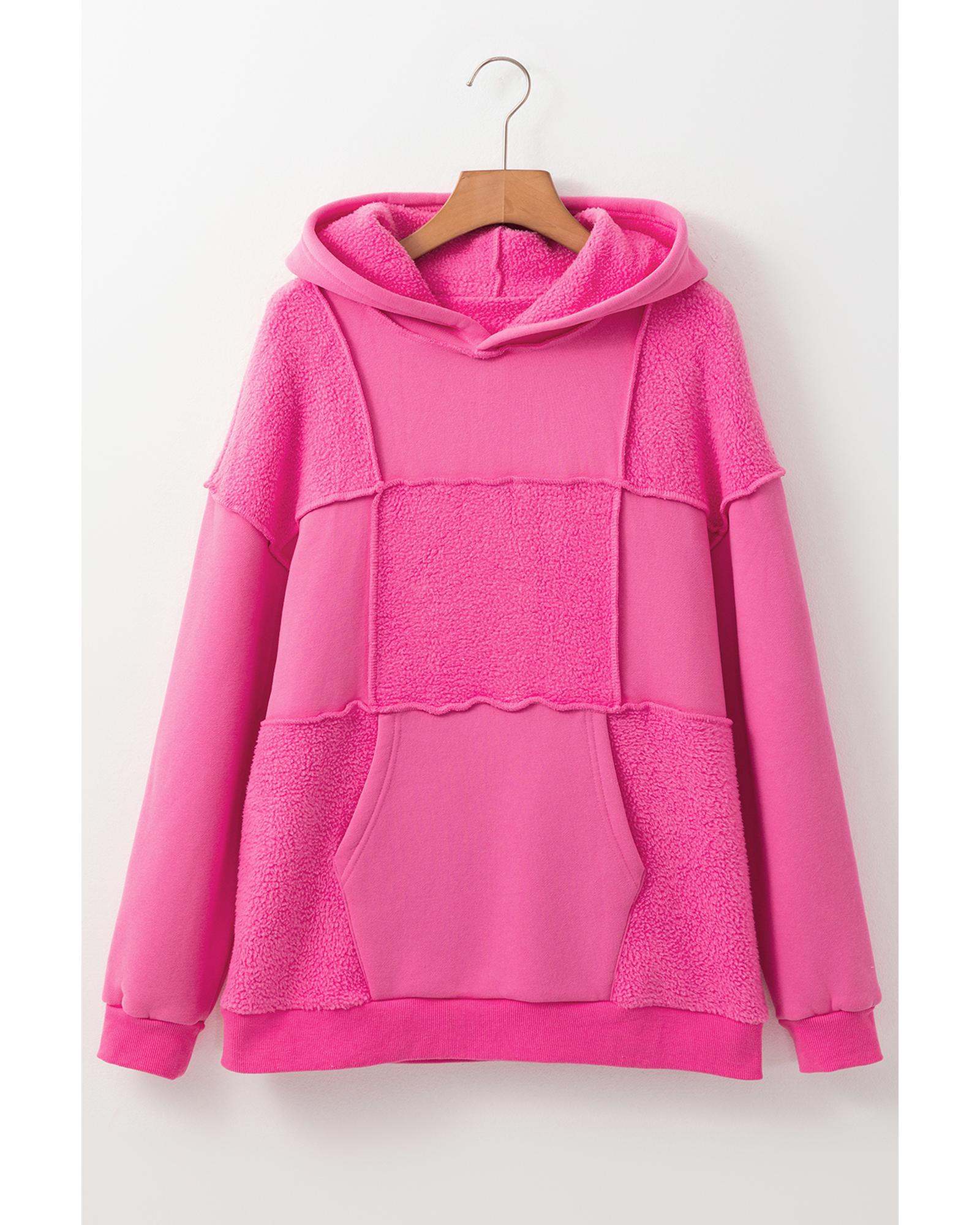 Pitaya Pink Mineral Wash Terry Patchwork Drawstring Hoodie – S