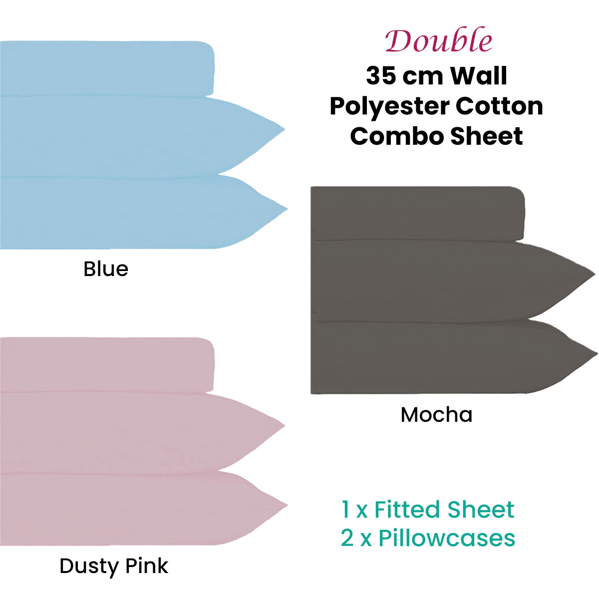 Enjoy the comfort and elegance of our 35cm Wall Plain Dyed Polyester Cotton Combo Set Double. This set is made from a soft and durable blend of polyester cotton, which offers both breathability and wrinkle-resistance. Available in an array of contemporary shades, this combo set is designed to complement any interior decor seamlessly. Experience the perfect balance of quality, comfort, and style with our 35cm Wall Plain Dyed Polyester Cotton Combo Set Double.