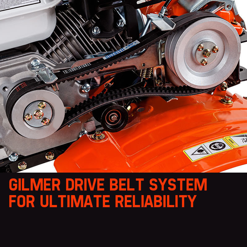 The USA designed BT-777 gets the job done faster with an 800mm tiller scope – over 35% wider than most alternative designs, greatly reducing the time it takes to prep your soil. It boasts an impressive 350mm tilling depth, made possible due to its non-restrictive safety shields. The unit features 3 self-propelled gears – 2 forward and 1 reverse – that drive the machine so you can get loads of work done with little fatigue. The superior hard-drawn and synchronous-rotating steel tiller blades offer superior durability in tough rocky soil, and one pass is all it takes to have finely milled and well-aerated earth.