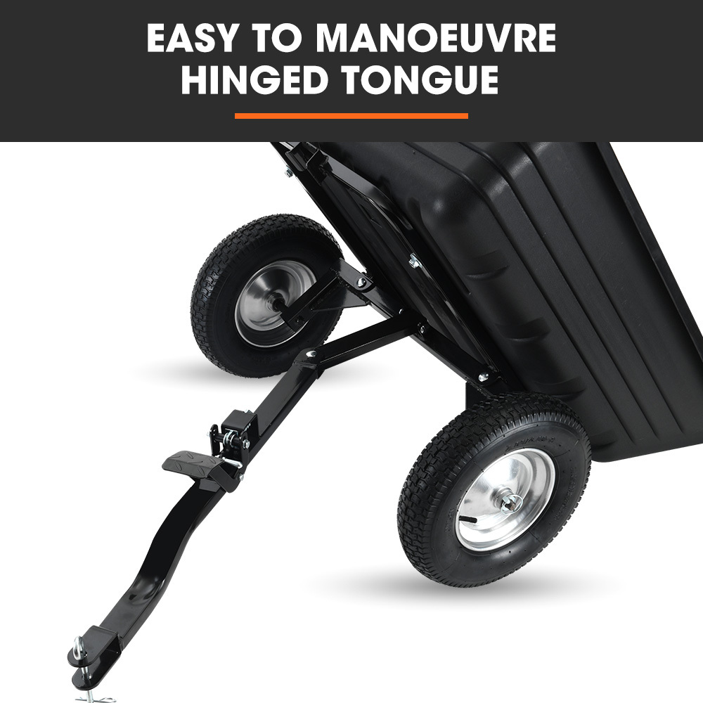 PlantCraft Poly Dump Cart, 272kg Load Heavy Duty Tipper Trailer, 16-inch Tyres, for Ride-on Lawn Mower Tractor, ATV, Quad Bike