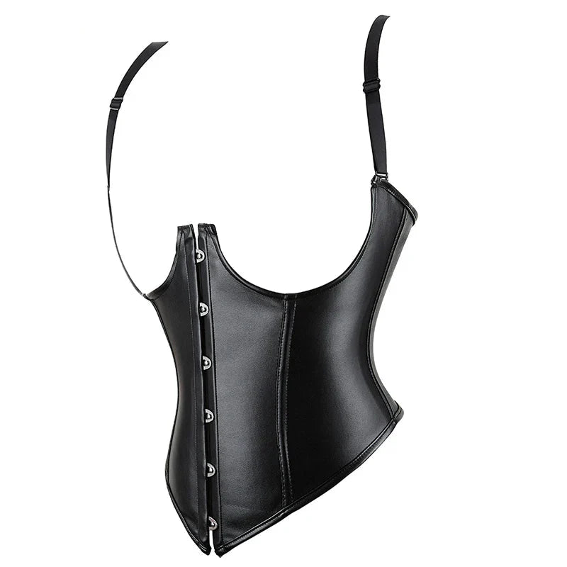 Plus Size Black Leather Corset Waist Trainer Vest With Strap 10 Plastic Bones S-6Xl – 6Xl