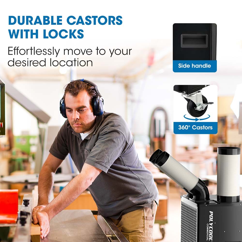 POLYCOOL 4.5kW Portable Industrial Spot Cooler, with Twin Cooling Ducts, 15A Plug