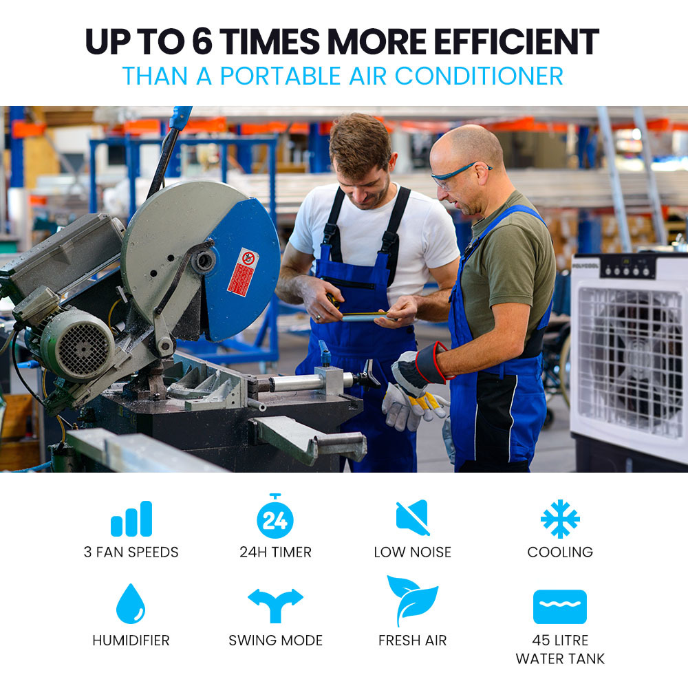 POLYCOOL 45L 125W Evaporative Air Cooler Portable Industrial Fan, Purifier, Humidifier, Remote Control