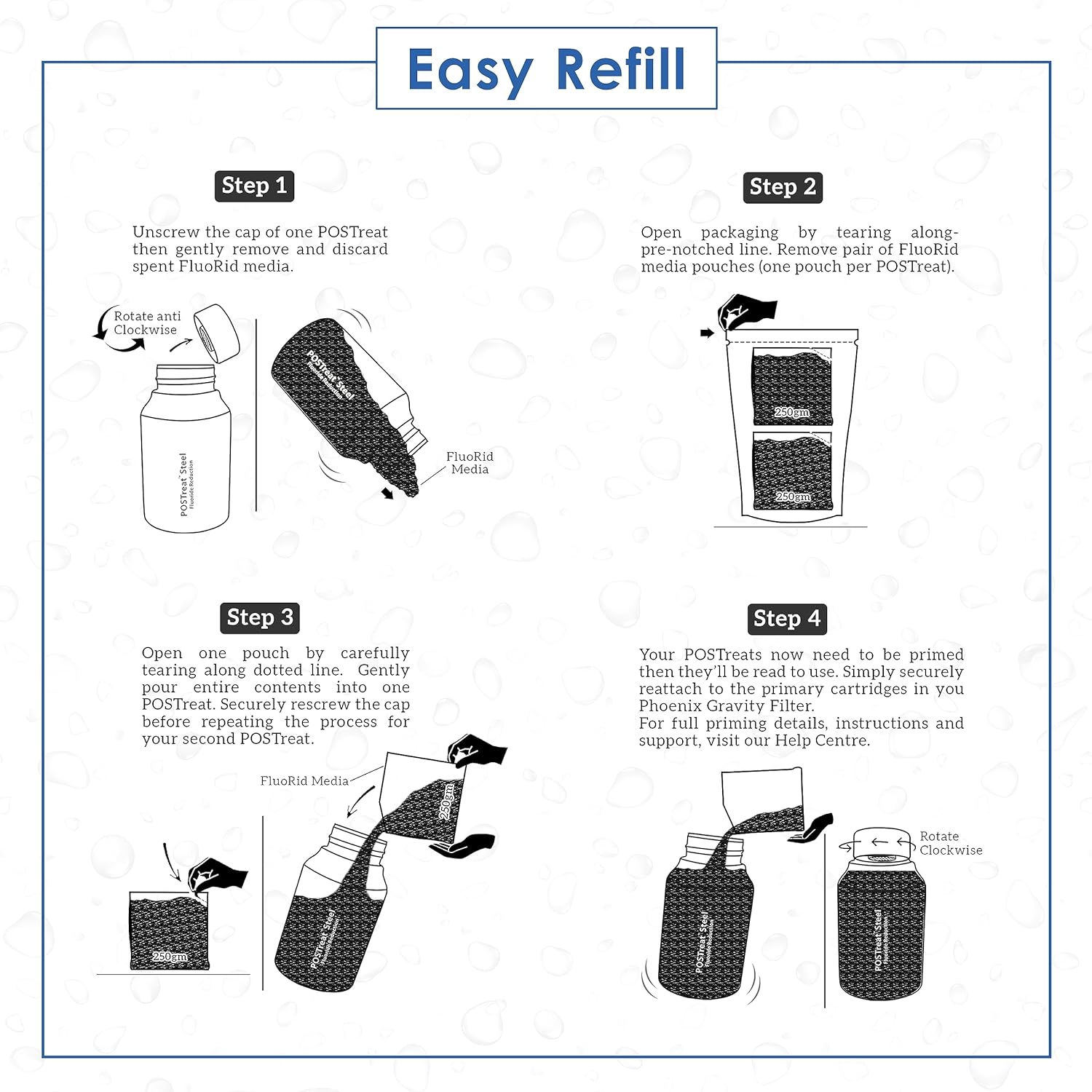 - Our convenient sachets enable you easily to change the FluoRid media in your POSTreat yourself.