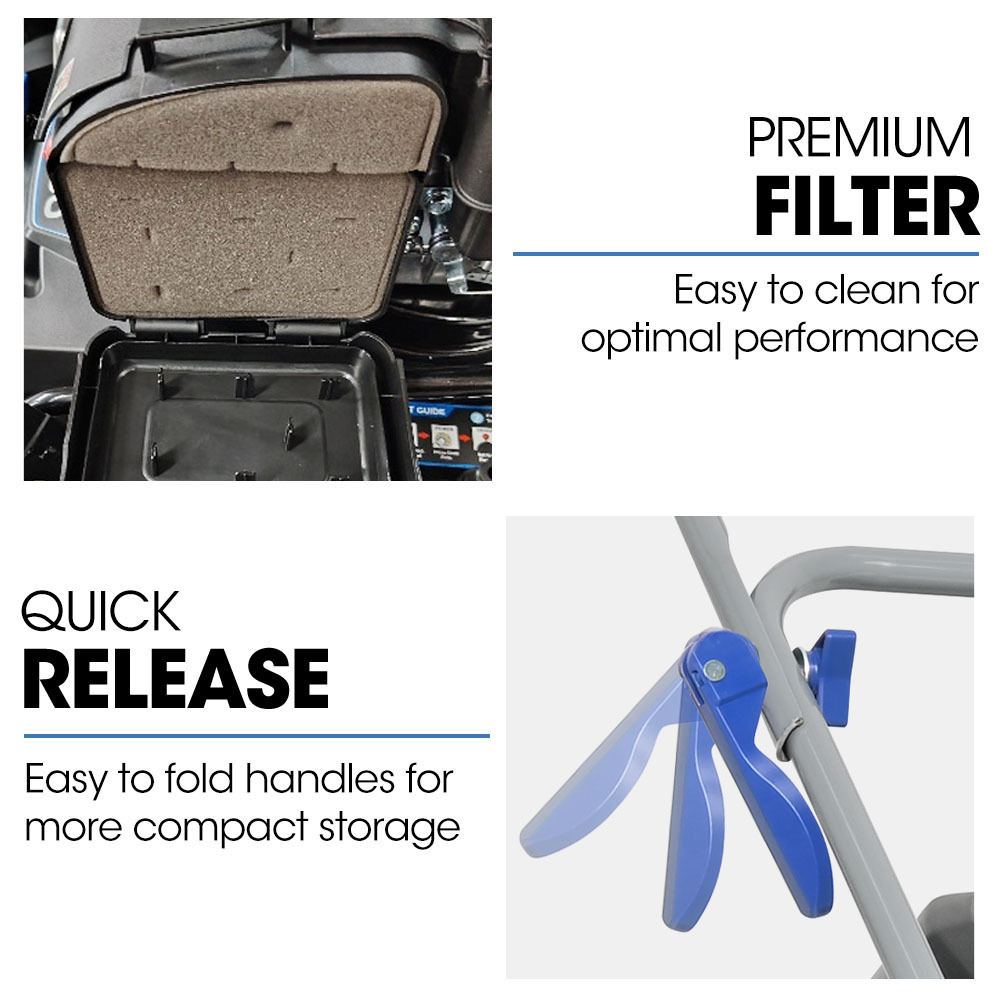 - Quick-release folding handle for more compact storage