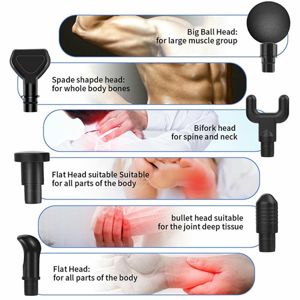Sphere head: For gentle deep tissue massage. Also best for large muscle groups and overall massage therapy.