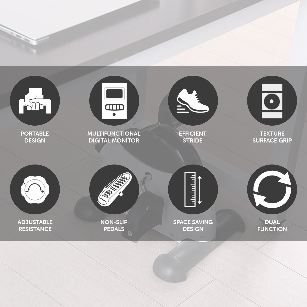 This mini bike pedal exerciser is portable, lightweight and simple to use. It has an adjustable resistance knob for desired resistance while training. Also, the mini pedal exerciser has adjustable foot straps that are secured with screws for small to larger feet.