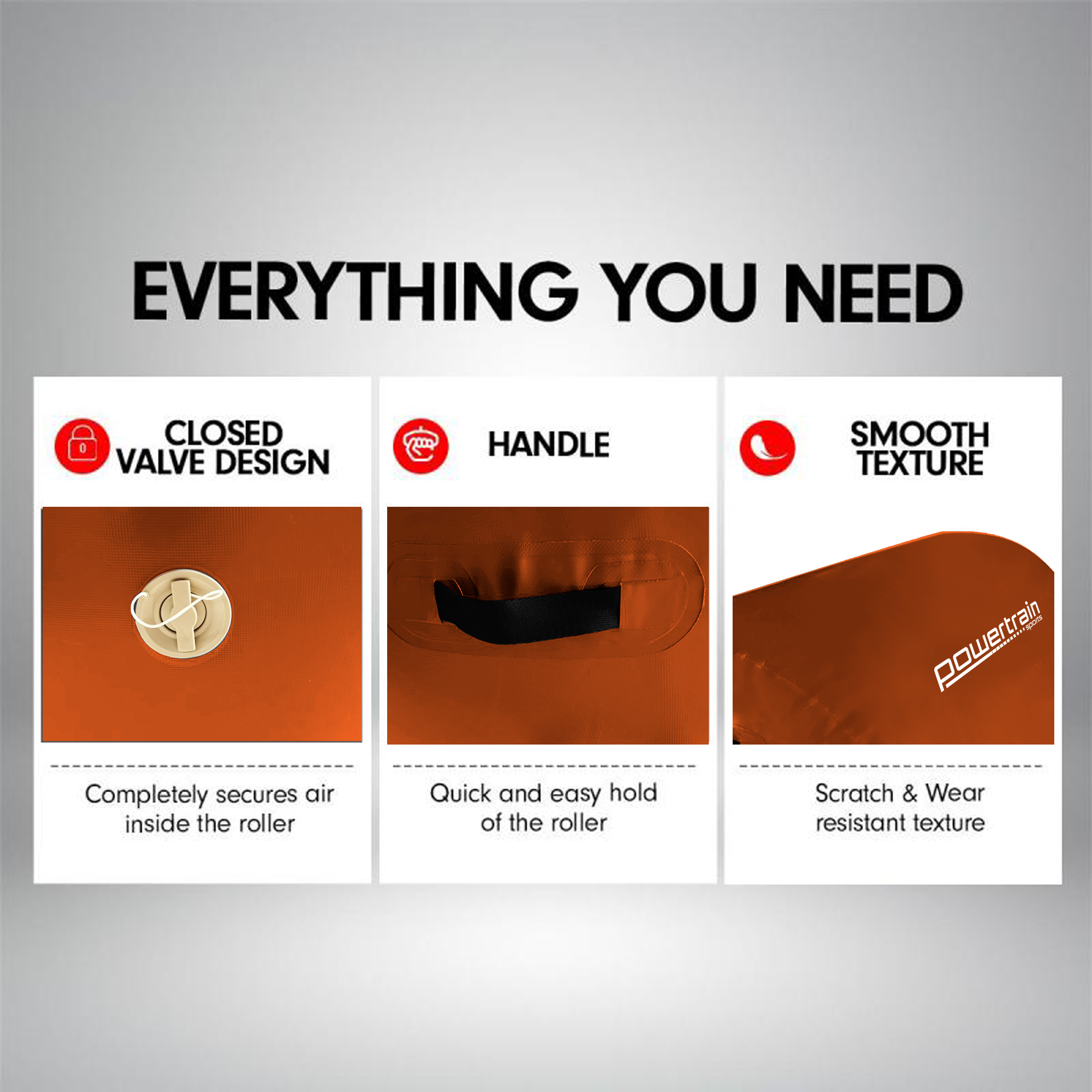 Powertrain Sports Inflatable Gymnastics Air Barrel Exercise Roller 120 x 75cm – Orange
