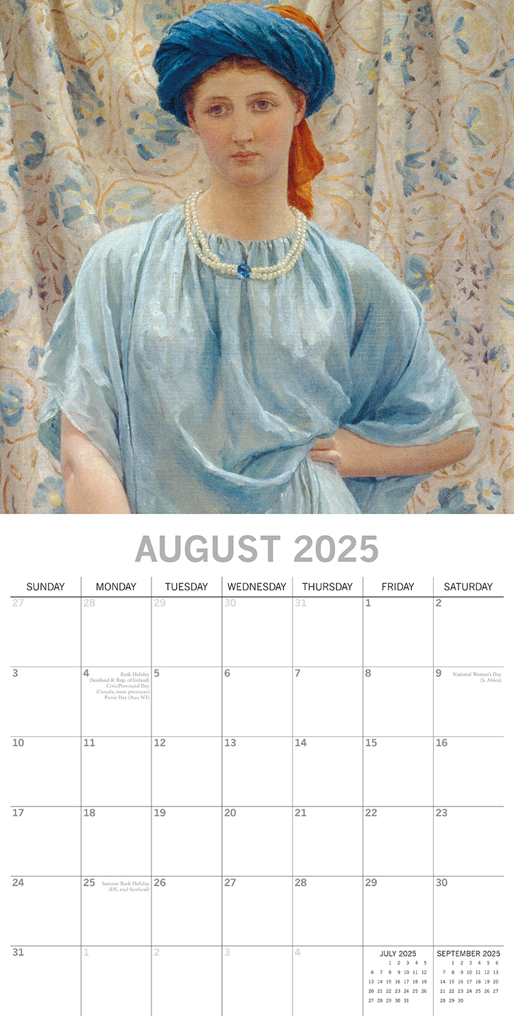 Journey to a world of romantic beauty with the “Pre-Raphaelites” 2025 calendar. Celebrating art that predates the High Renaissance, its rich details and evocative scenes captivate.This beautifully designed, brand-new calendar is both 100% plastic-free and fully recyclable. It comes shrink-wrapped in its original packaging and features: