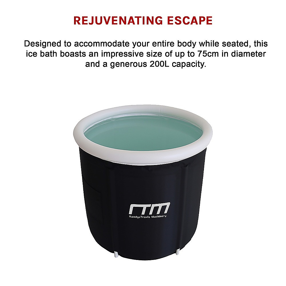 Designed to accommodate your entire body while seated, this ice bath boasts an impressive size of up to 75cm in diameter and a generous 200L capacity. Crafted from resilient materials and equipped with a premium insulation layer, it effectively preserves the temperature of the water for extended periods, be it cold or hot.
