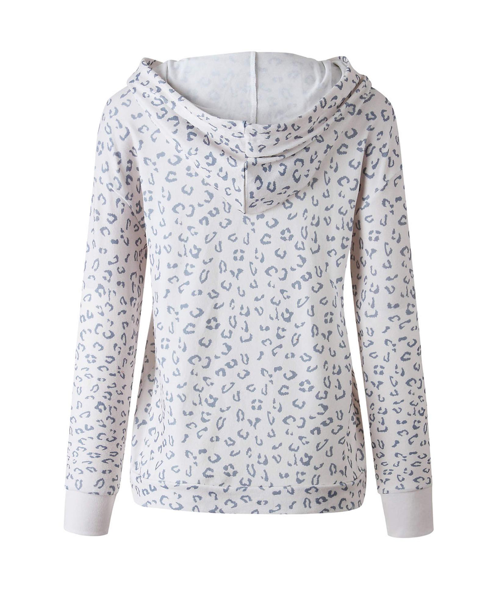 Printed Subtle Slit Plus Size Leopard Hoodie – 4X