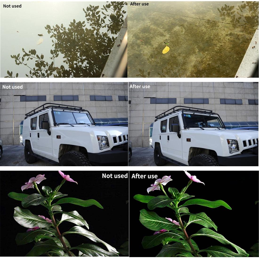 • It removes glare from non-metallic surfaces, such as windows and water.