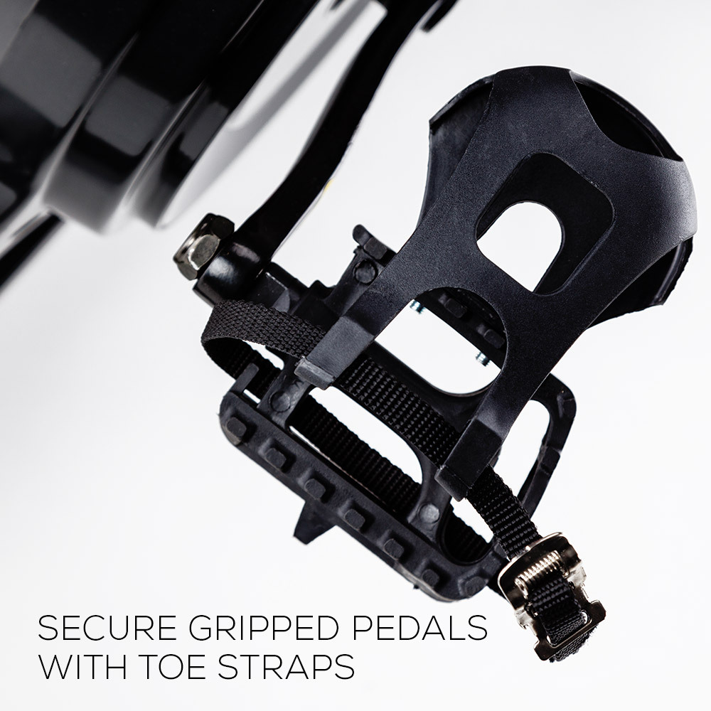 - Pedals: Secure grip with toe straps