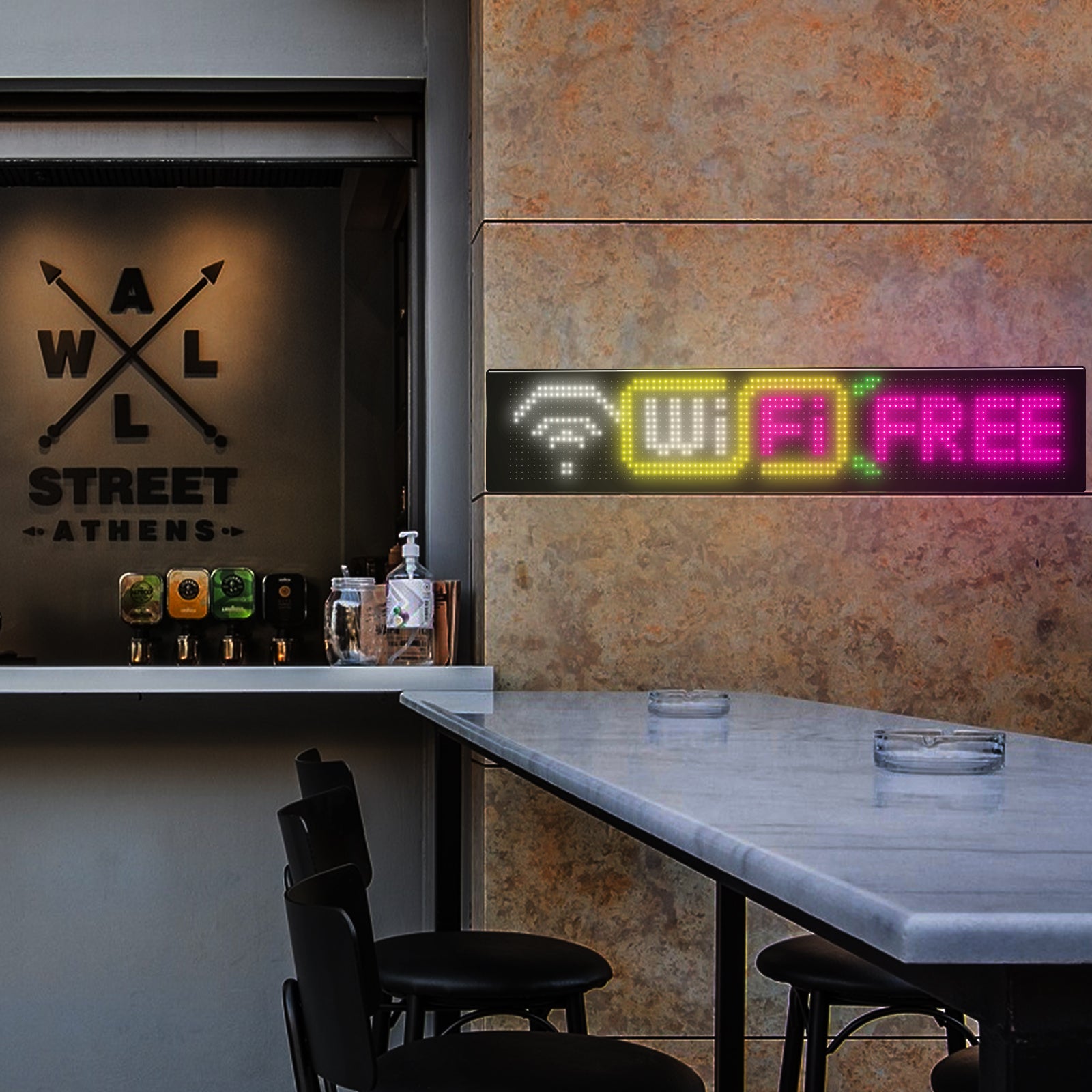 design is IP65 waterproof, making it durable and adaptable to various mounting spots. With full DIY functionality, you can display custom text and patterns to promote a business, share personal messages, or creatively express yourself on the go.