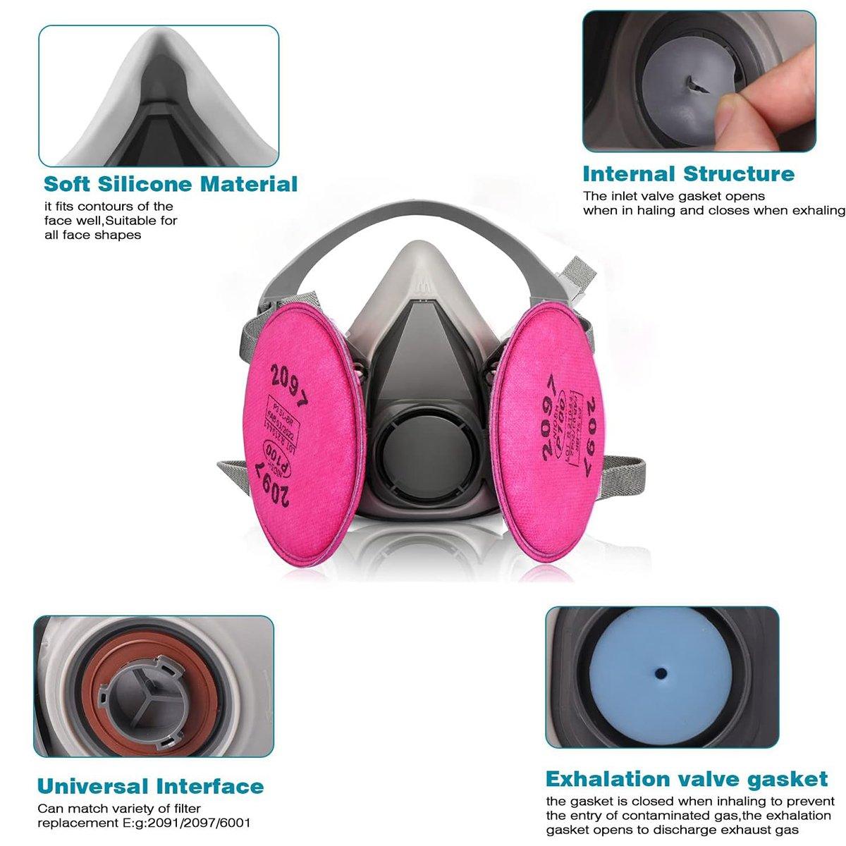 This high-quality half-mask respirator is designed to provide excellent protection against dust, particles, and fumes, making it ideal for pesticide spraying, painting, decoration, and other industrial or DIY applications. With its soft silicone material and ergonomic design, it fits comfortably on various face shapes, ensuring a secure seal without discomfort. Equipped with replaceable filters, this mask effectively blocks fine particles while maintaining good breathability. It’s reusable and easy to clean for long-term use.