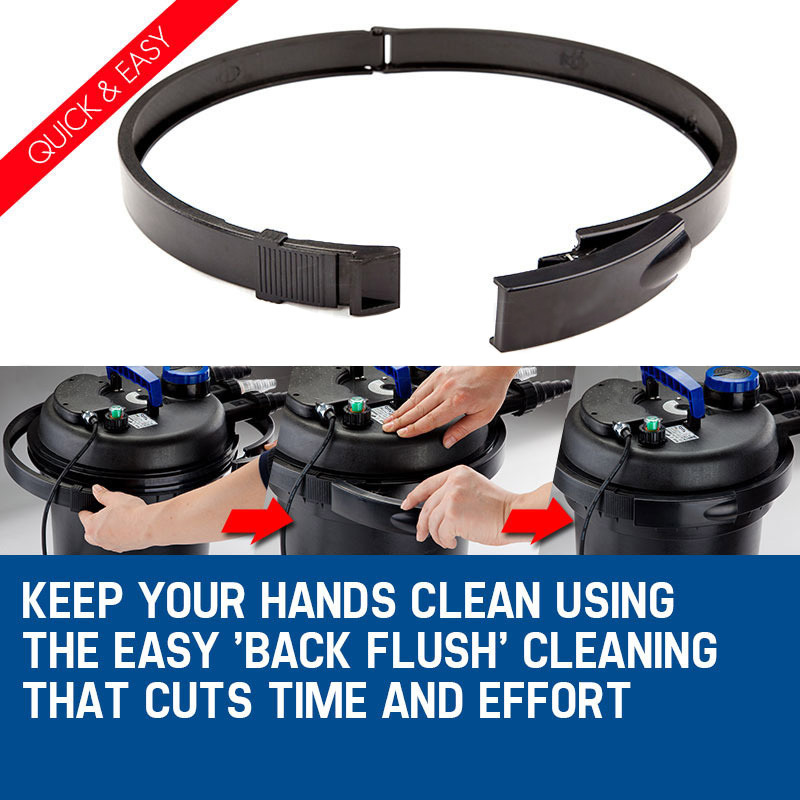 The benefit of an external filter such as this is that you can check if there are clogs or blockage without greatly disturbing the fish, decorations or the substrata of the pond.