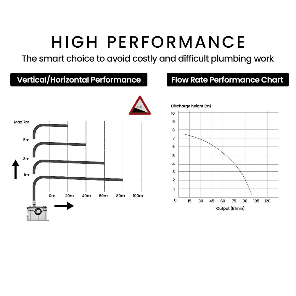 Say goodbye to the need for professional plumbers and extensive construction. Our Macerator Pump is designed for easy installation, making it a perfect choice for DIY enthusiasts.