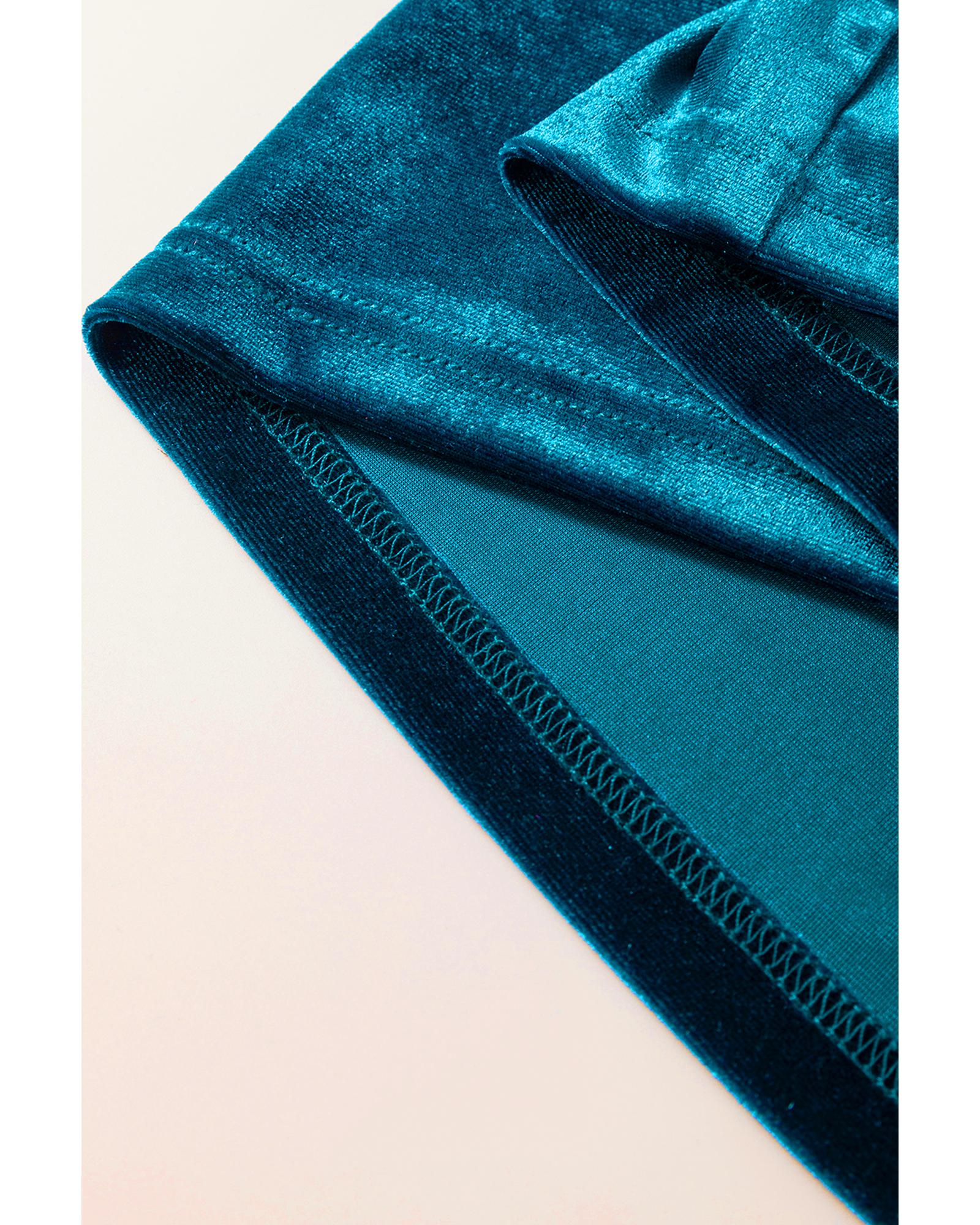 - Prussian Blue Velvet Short Sleeve Shirred Waist Tiered Maxi Dress