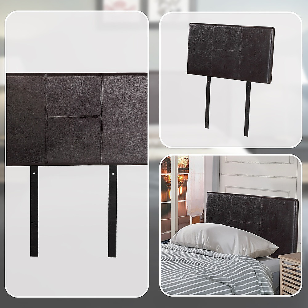 This headboard for standard Single-sized bed frames is created with quality materials, including easy-to-maintain PU leather that will maintain its sophisticated look for many years to come. This particular model comes with elegant stitching accents that provide just the right level of understated pop. A neutral brown will blend seamlessly with a wide variety of bed frames and other bedroom furniture.