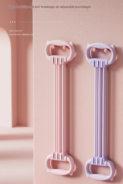 Purple Adjustable Resistance Chest Expander with 6 Levels – Cute Cat Ear Puller for Full Body Workout