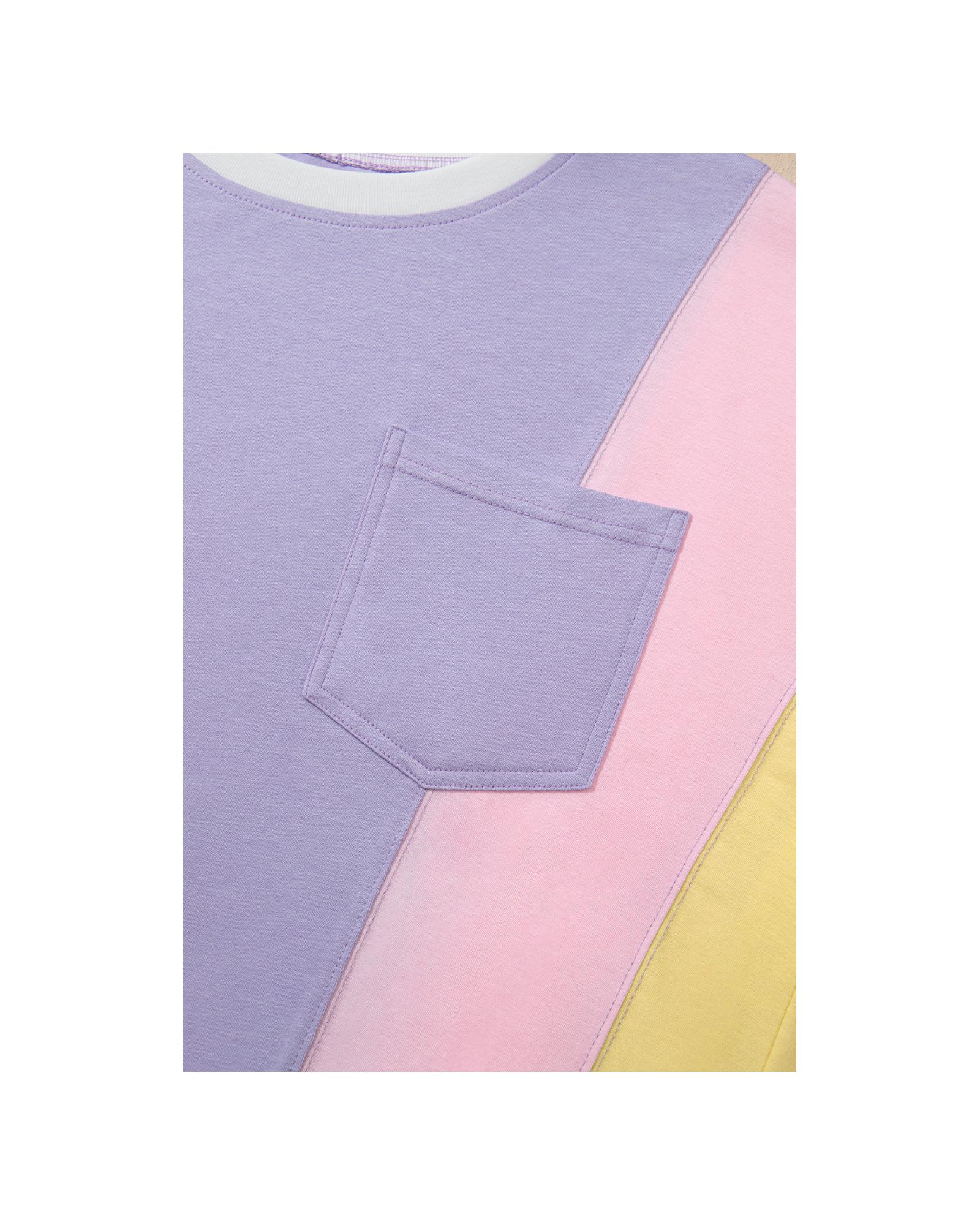 Purple Color Block Patchwork Half Sleeve Oversized T Shirt – L