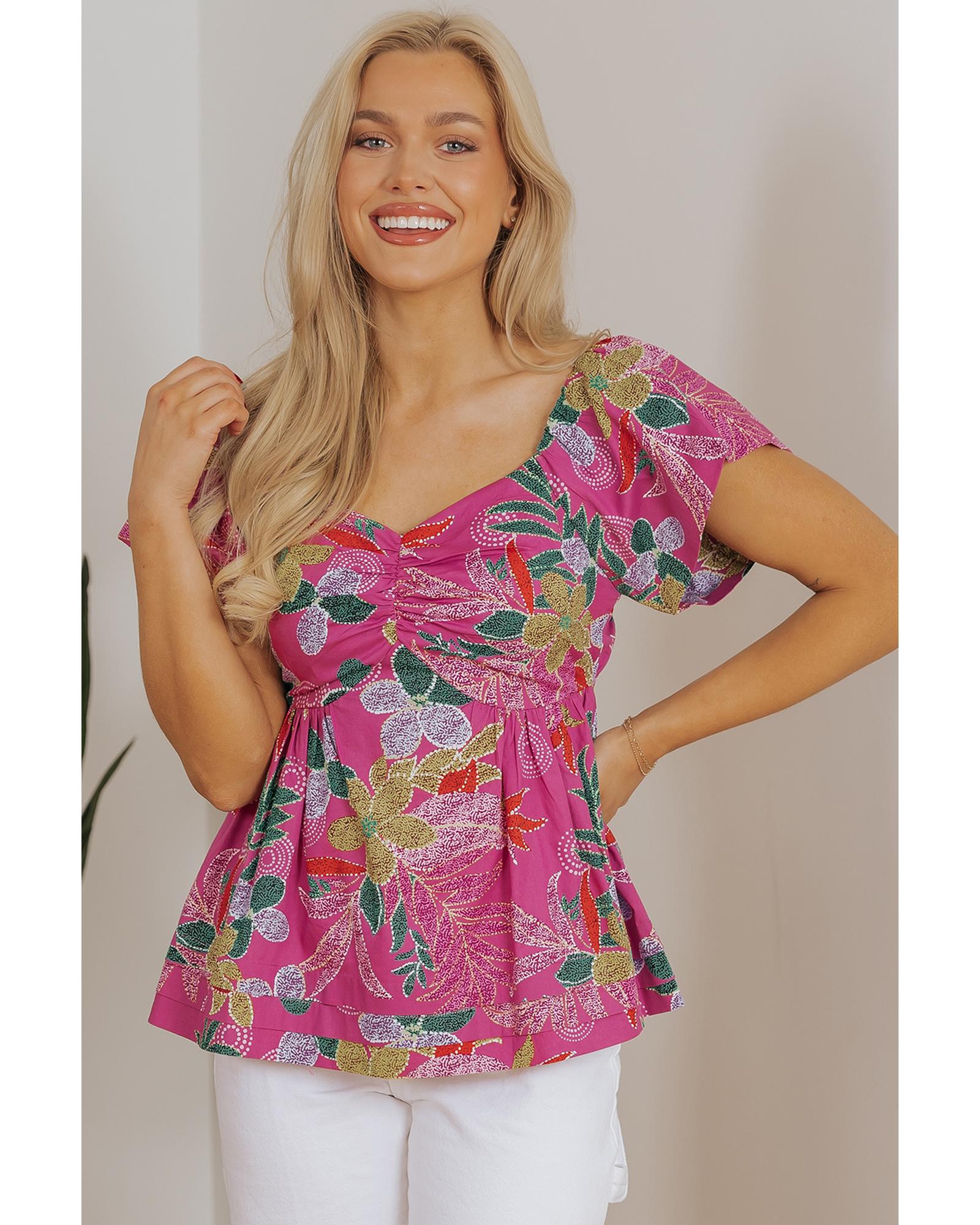- Purple floral print blouse