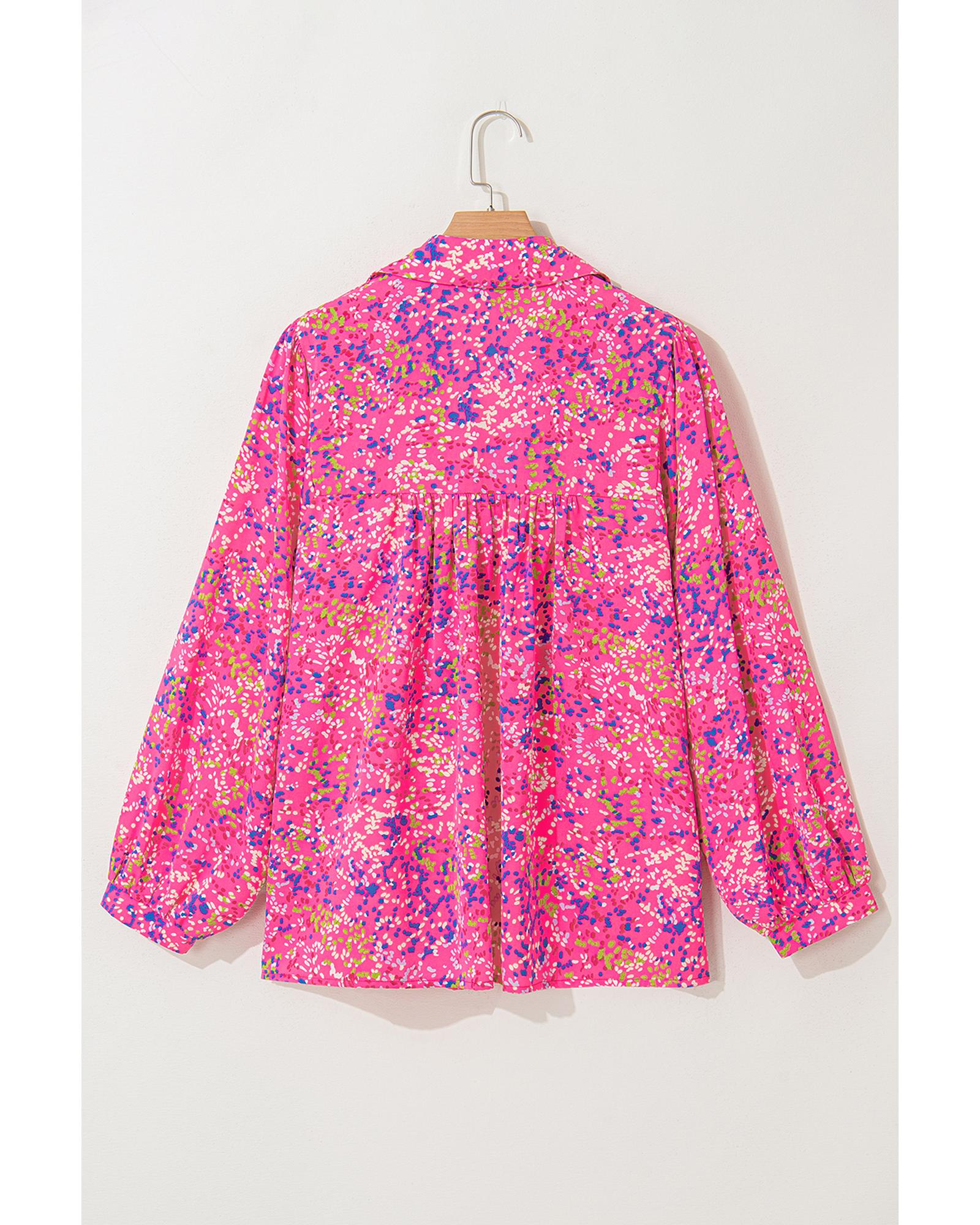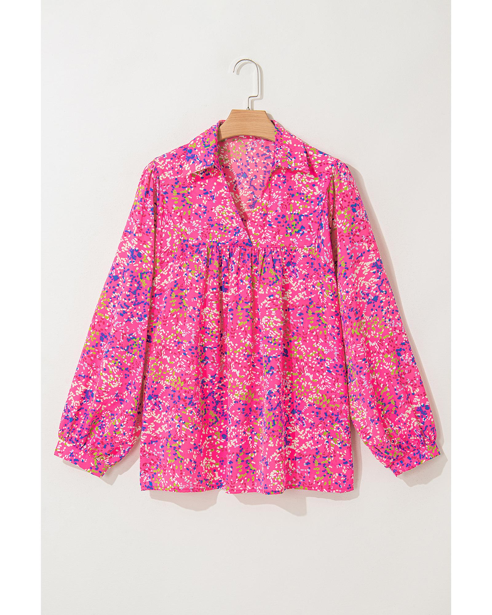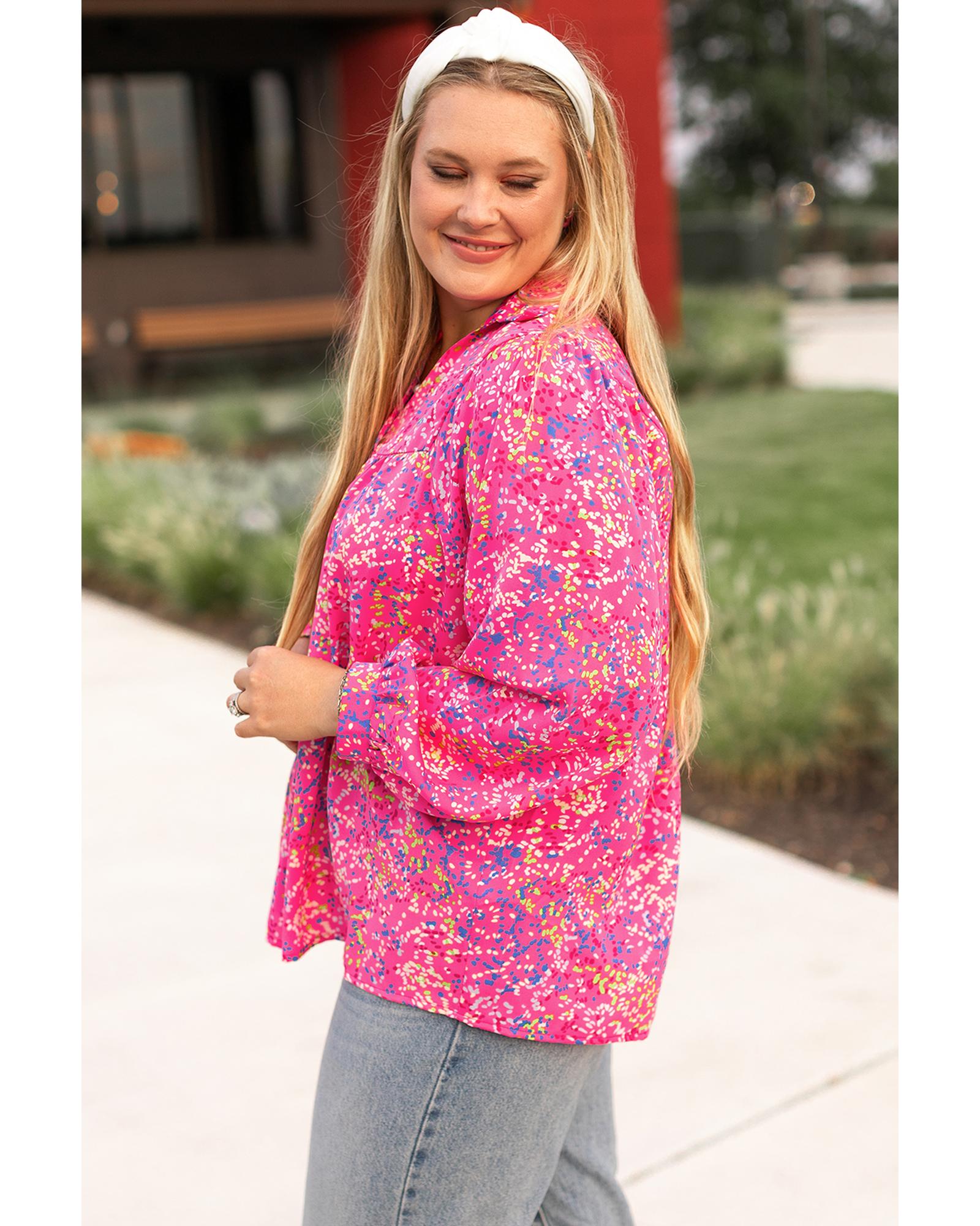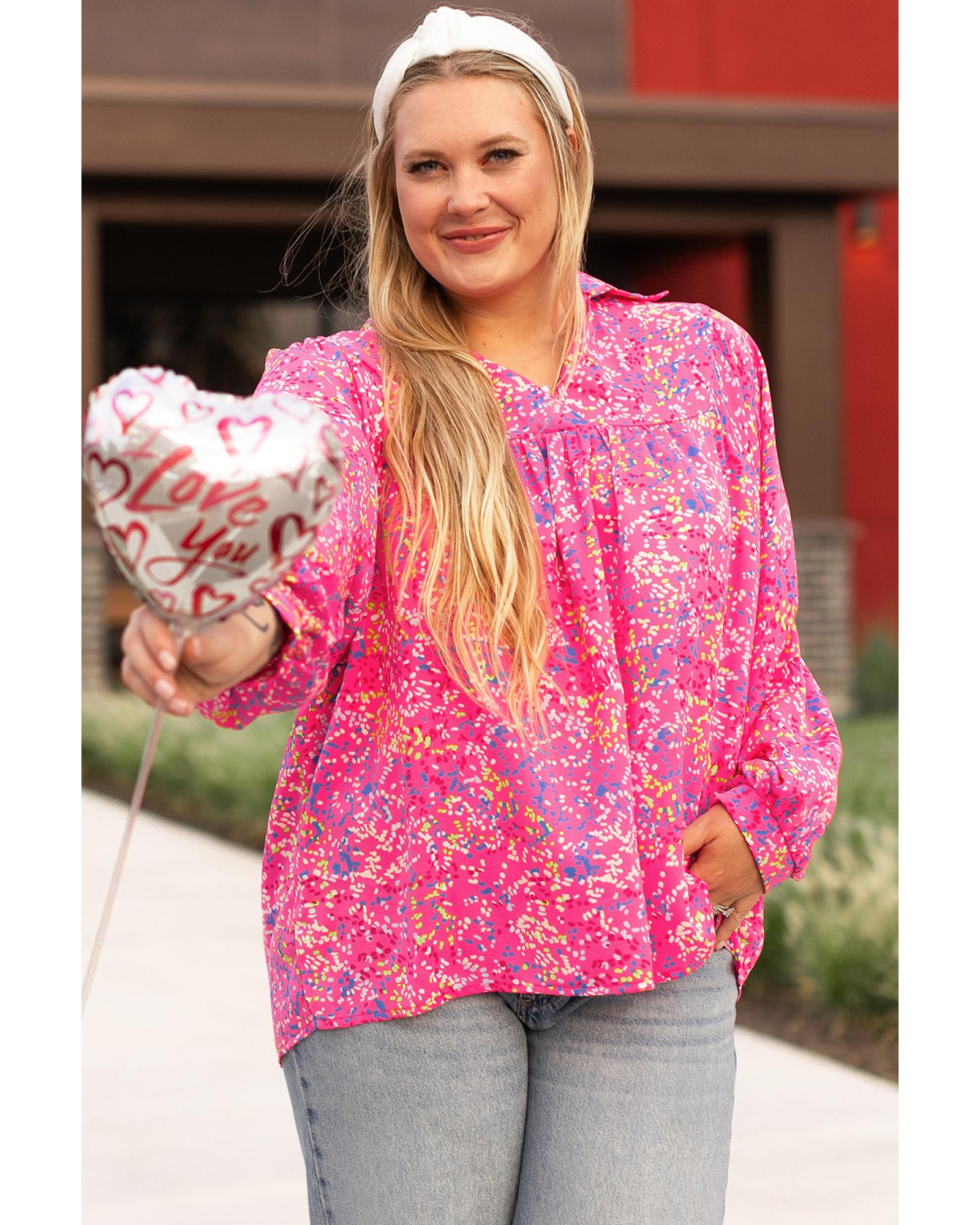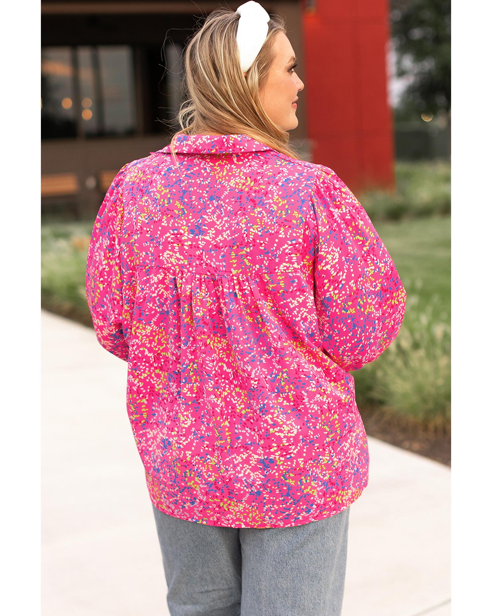 Purple Plus Size Floral Print Puff Sleeve V Neck Blouse – 1X