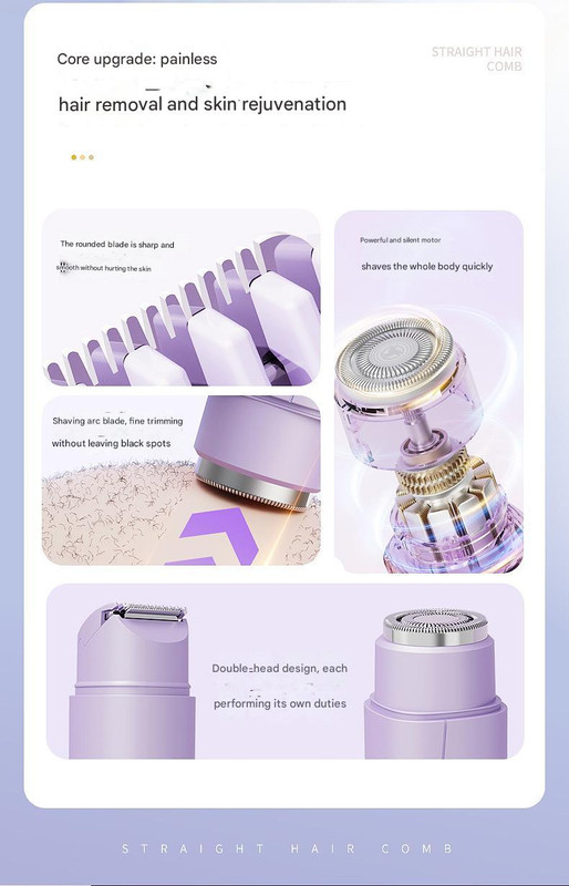 Purple Portable Wireless Electric Hair Remover – Dual-Head Rechargeable Mini Shaver for Women’s Sensitive Areas