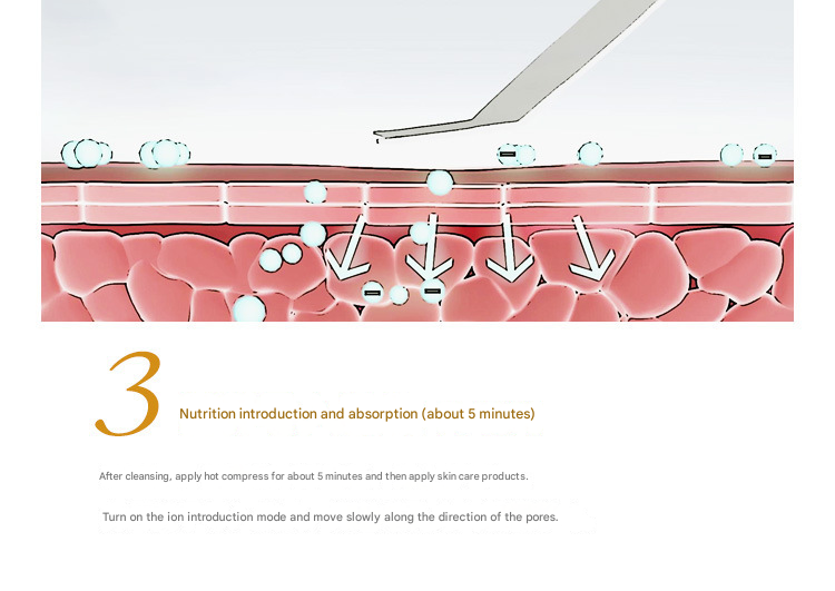 Negative ions help to deliver the active ingredients from your skincare products deep into the skin’s layers for superior absorption.