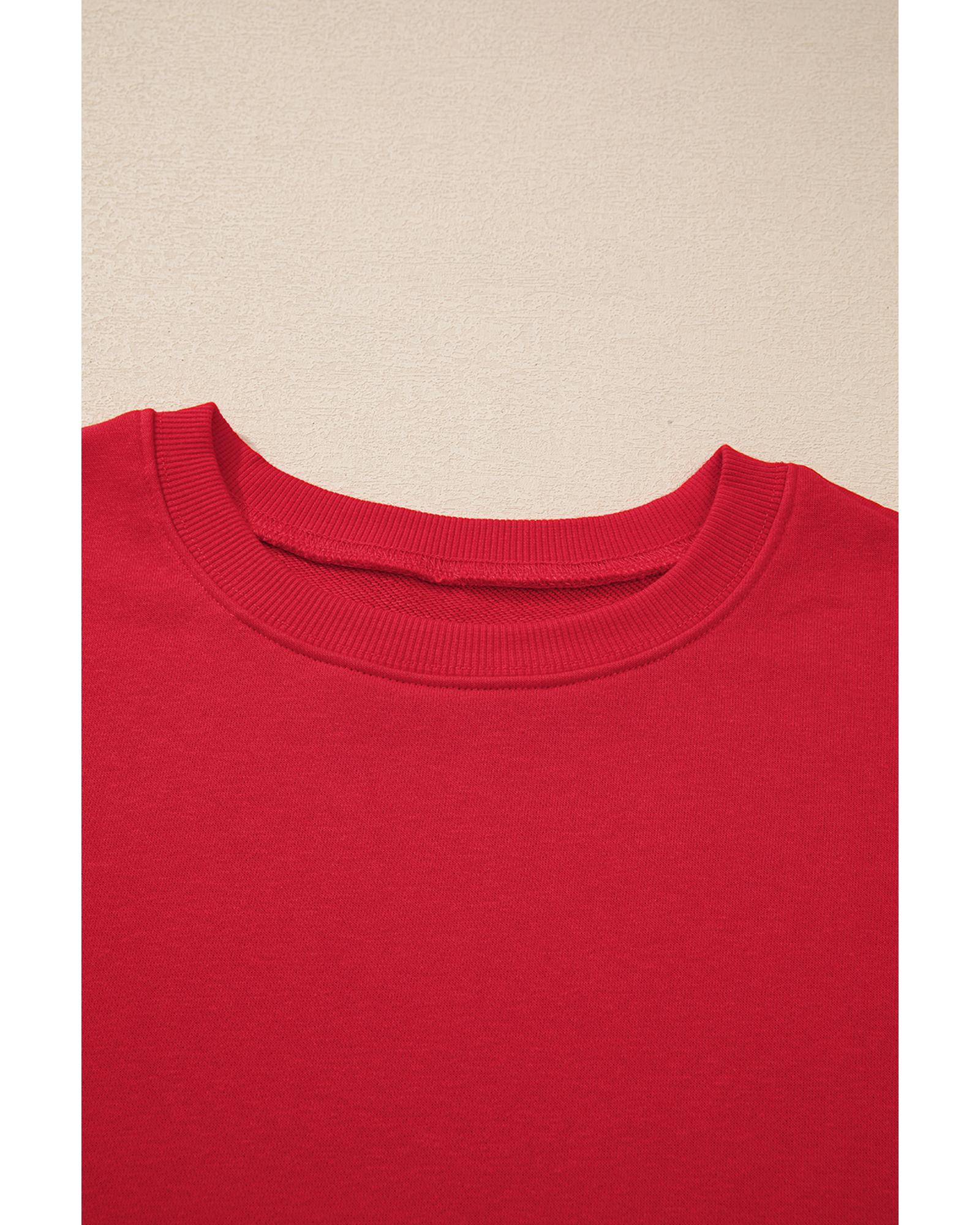 Racing Red Solid Crew Neck Drop Shoulder Plus Size Sweatshirt – 2X