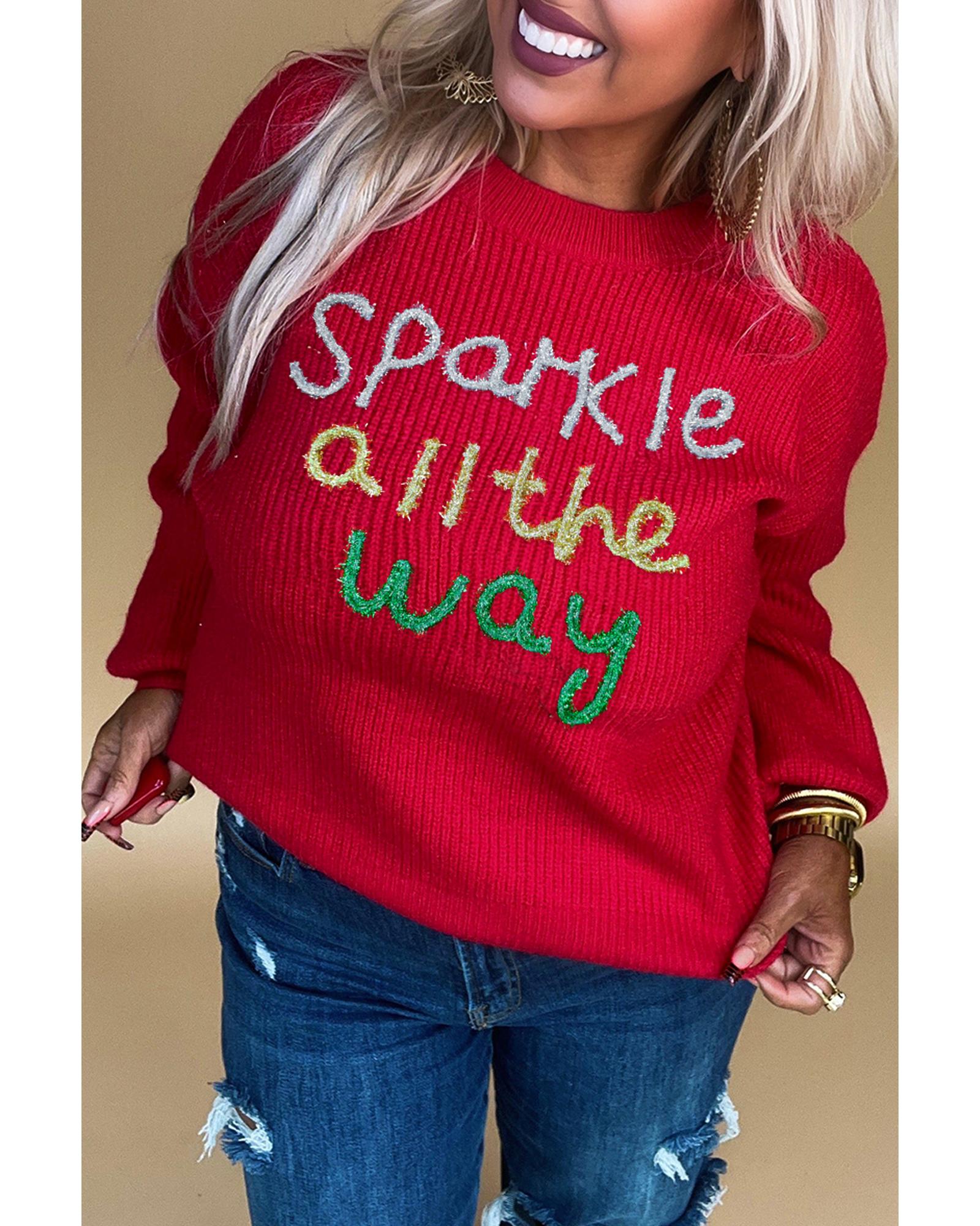 - Racing Red Sparkle All The Way Tinsel Crew Neck Plus Size Sweater