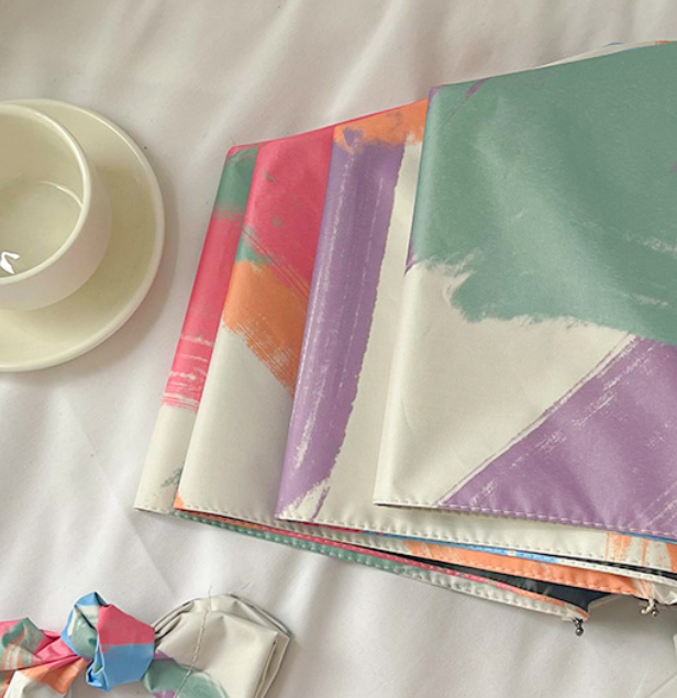 Stay protected from the sun and rain with our delightful patterned folding umbrella! This compact and lightweight umbrella features a beautiful design, perfect for adding a touch of elegance to your everyday style. Its five-fold, six-rib construction makes it incredibly portable, easily fitting into your purse or backpack.