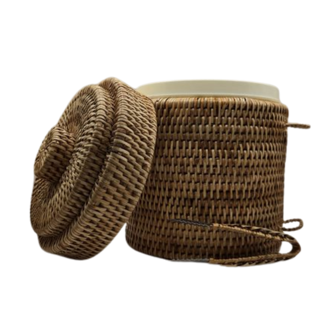 The Rattan Ice Bucket with Matching Tongs – Natural is the perfect blend of style and function. Handwoven from natural rattan, this piece not only keeps your ice chilled but also adds a warm, rustic touch to your hosting setup, whether it’s an outdoor BBQ or an indoor dinner party.