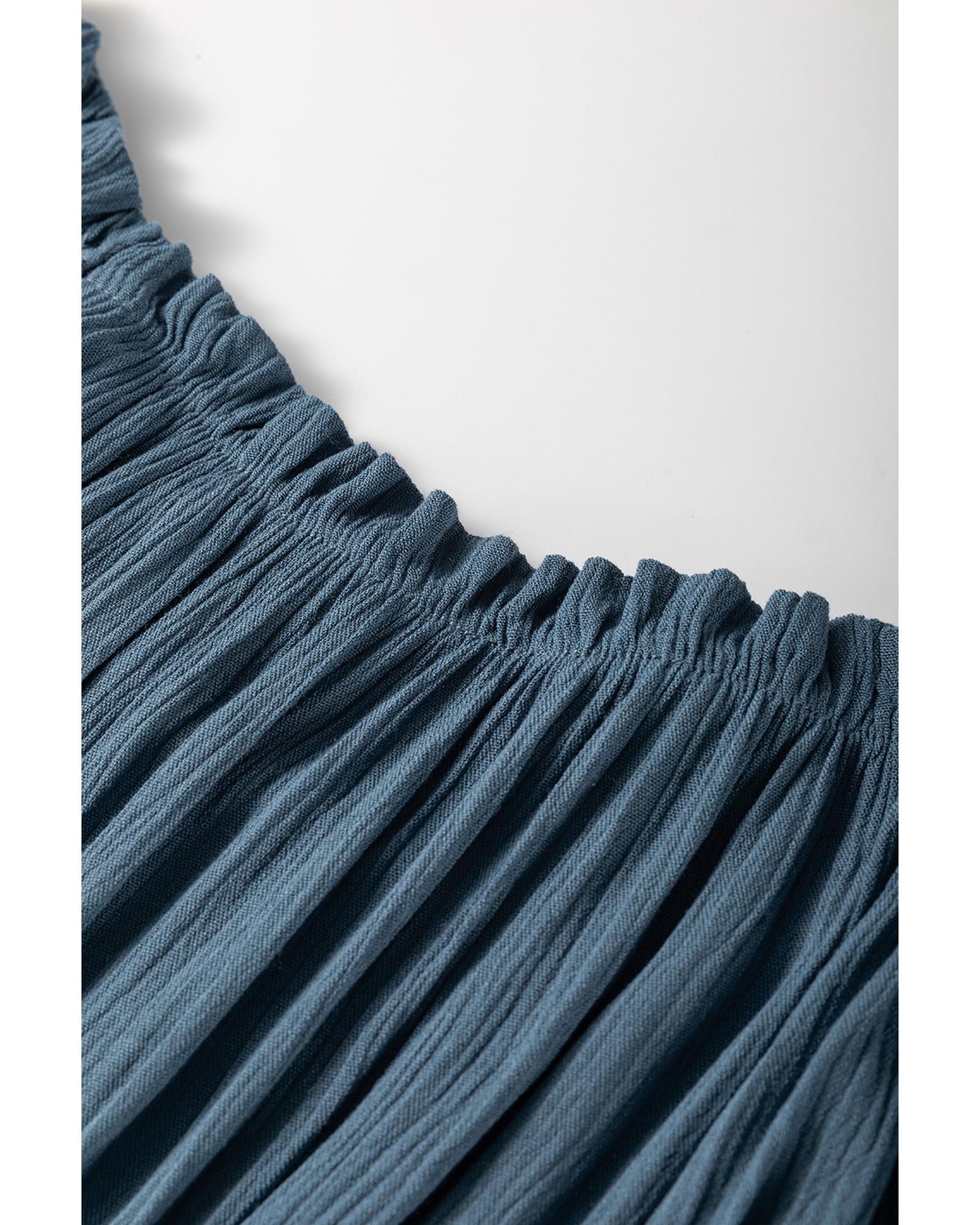 Real Teal Frilled Neckline 3/4 Sleeve Layered Ruched Mini Dress – L